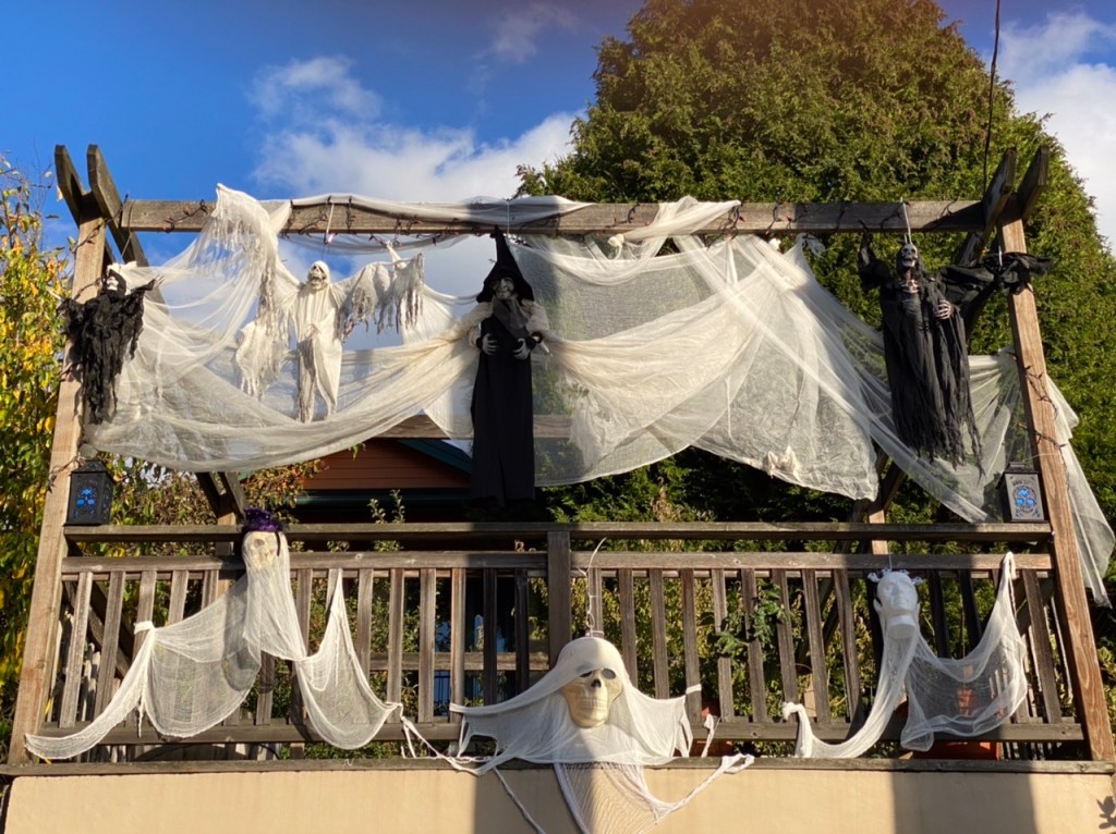 At the end of the evening, as if by magic, all the decorations disappeared (down into our basement where they hang around haunting the dark recesses.) And then it was time to have a beer and collapse. Who knows how many steps I climbed to stage and dismantle the event? The saintly spirits of All Hallow’s Eve pushed me through to the end.