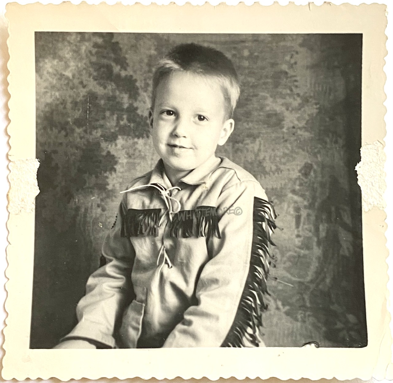 My family could rarely get me out of the Davy Crockett outfit. For this portrait, I was insistent that I be allowed to wear my coonskin hat…but higher authorities prevailed. The shirt moved west with us along with my spirit of wildness. And the shirt lives on having been packed for years in a box in our basement.