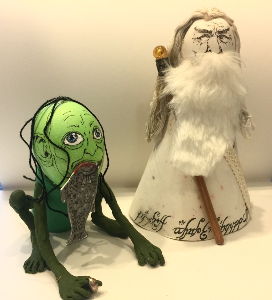 Each year I have searched the papers and internet for popular cartoon films, looking for my muse egg or two, waiting for some characters to speak to me. I heeded the call, “To Infinity and Beyond!”, “My Precious!”, “Oh, I am detecting nuttiness.”, “We’re all mad here.”, among other catchy phrases. If there is a theme, I might do two or three characters from the same film.