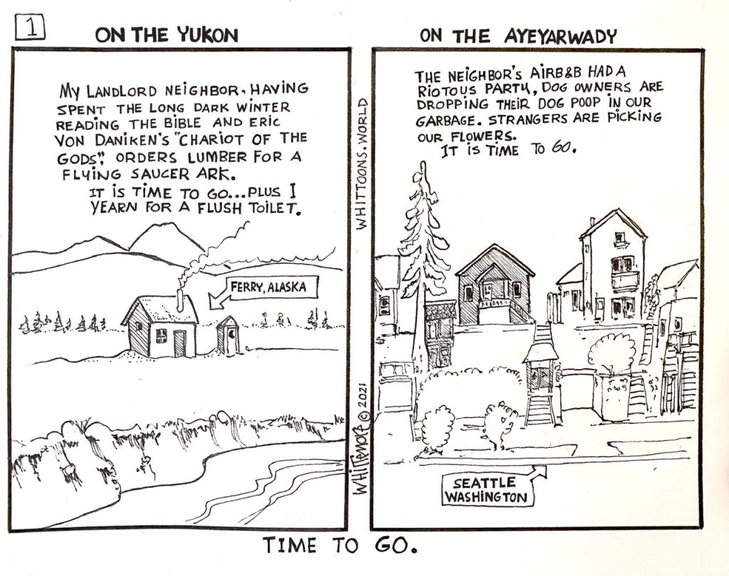 And so begins a tale of two river runs some forty years and half a world apart. The first run was on the Yukon River as a crewman working for the Yutana Barge Company out of Nenana, Alaska. The second run was up the Ayeyarwady River in Myanmar as a tourist with AMAWaterways River Cruises.