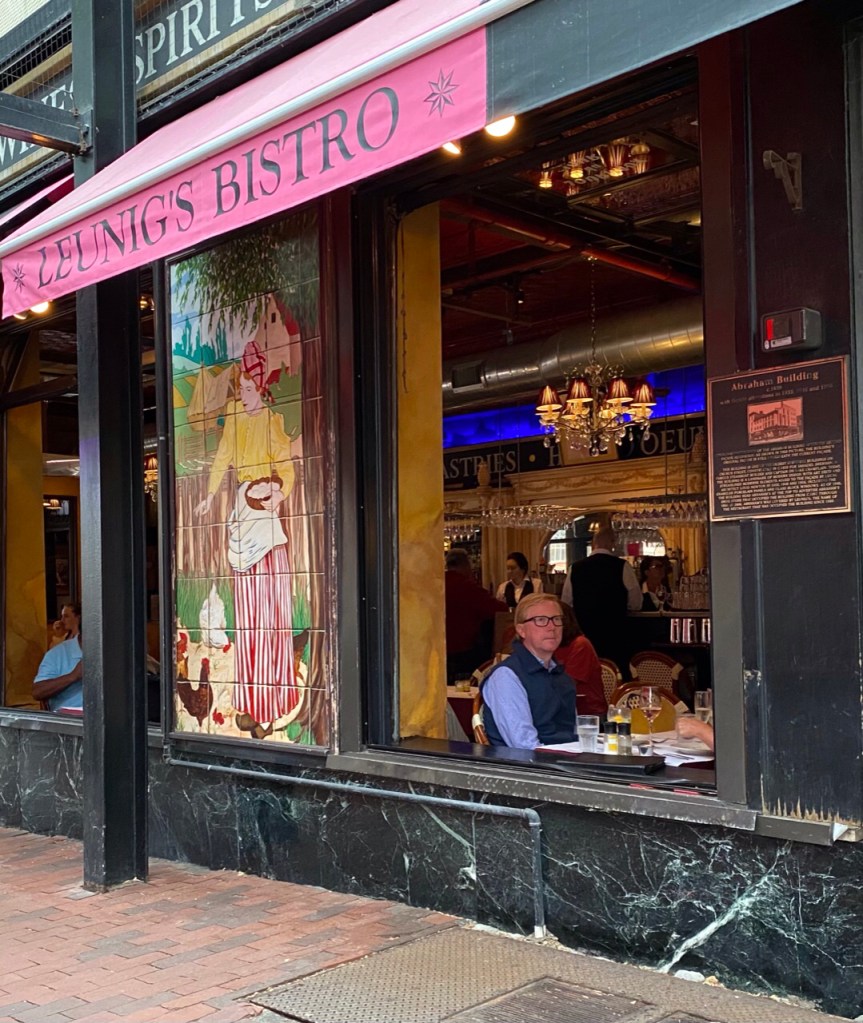 For a little bite of French culture, we returned to Leunig’s Bistro on Church Street. This spot is just a block from City Hall where Bernie held office for a few years prior to heading to Washington, D.C. Waiters wore black vests and long white aprons. A nice touch for pseudo-authenticity. People promenade on the boulevard, as well as a few very well groomed golden retrievers. What else would you expect in New England?