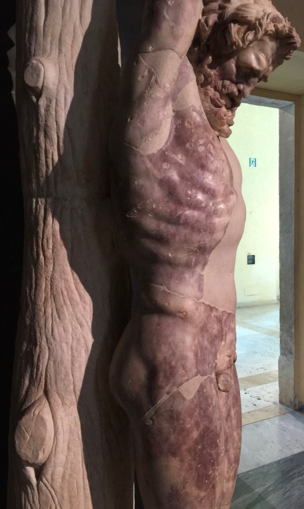 And in sculpture, one artist worked with just the right red colored marble to depict a flayed satyr who challenged Apollo to a music contest. Nice. I take it he lost. Beware of taking on the Gods.