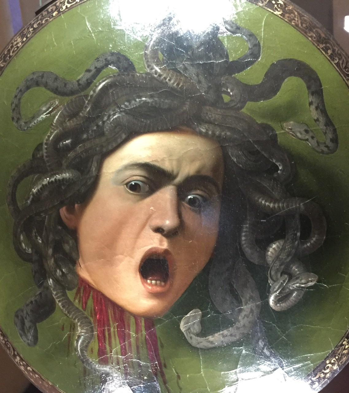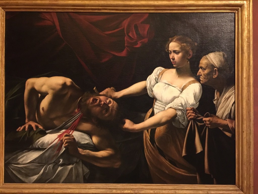 Caravaggio had a way with blood, and severed heads made for glorious gore. His reds just pop…just like the heads. His work got me to thinking about the art we have seen on our trips and how some works are just creepy, though often mesmerizing.