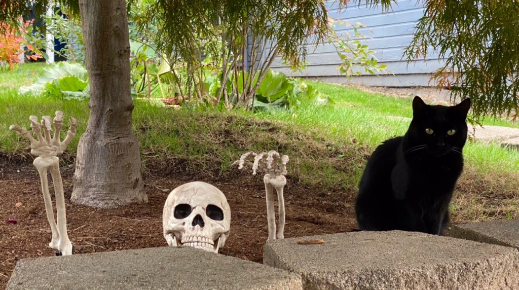 Unlike our local feline in full formal black attire that greets all passing through his territory.