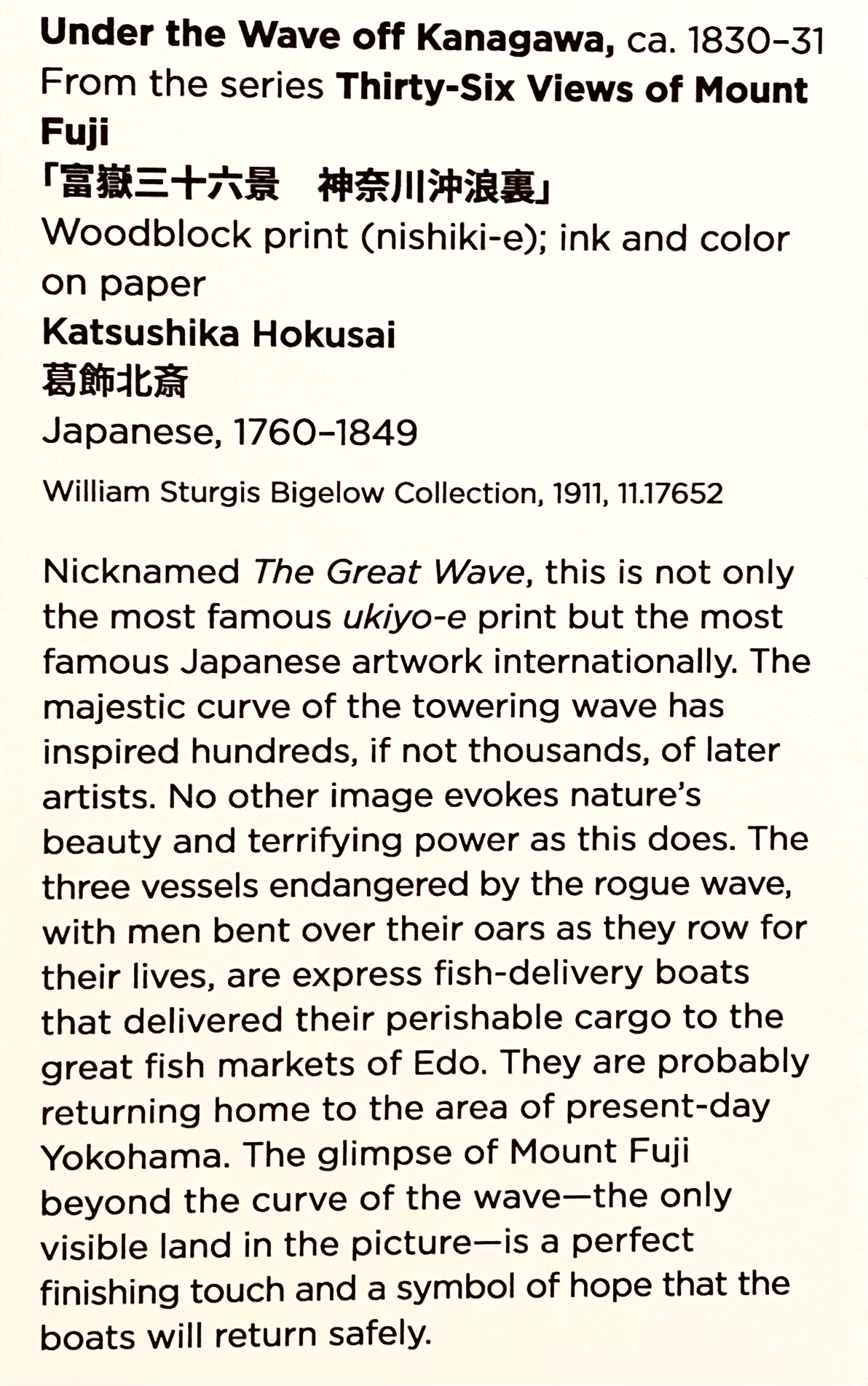 I was more inclined to see dragon claws in the wave crests, rather than graceful seabirds. Maybe I see more imminent threat in the rogue wave than soaring beauty. Maybe I should have done my Tai Chi before choosing to visit the Museum.