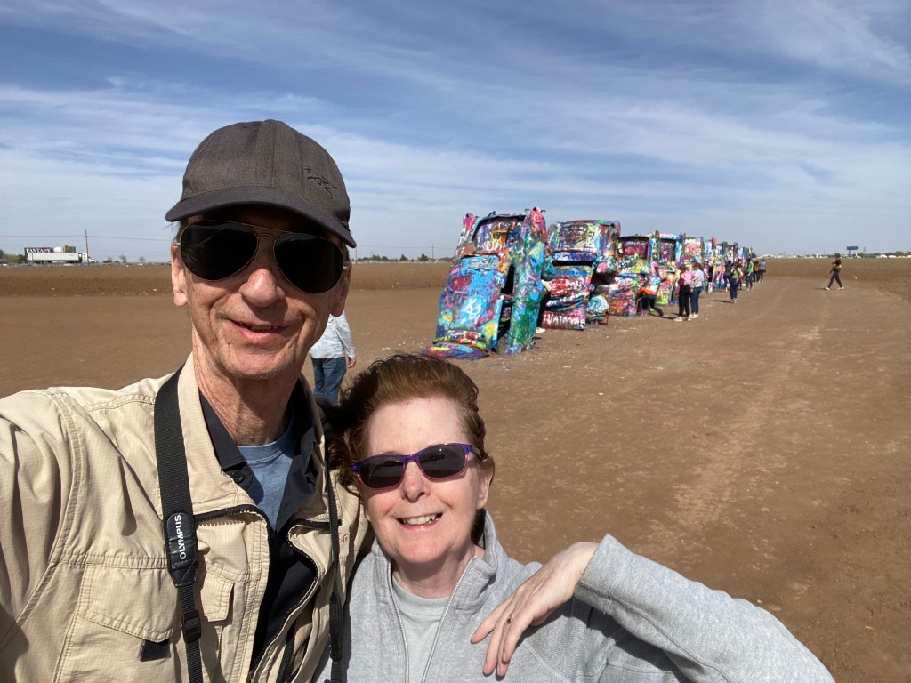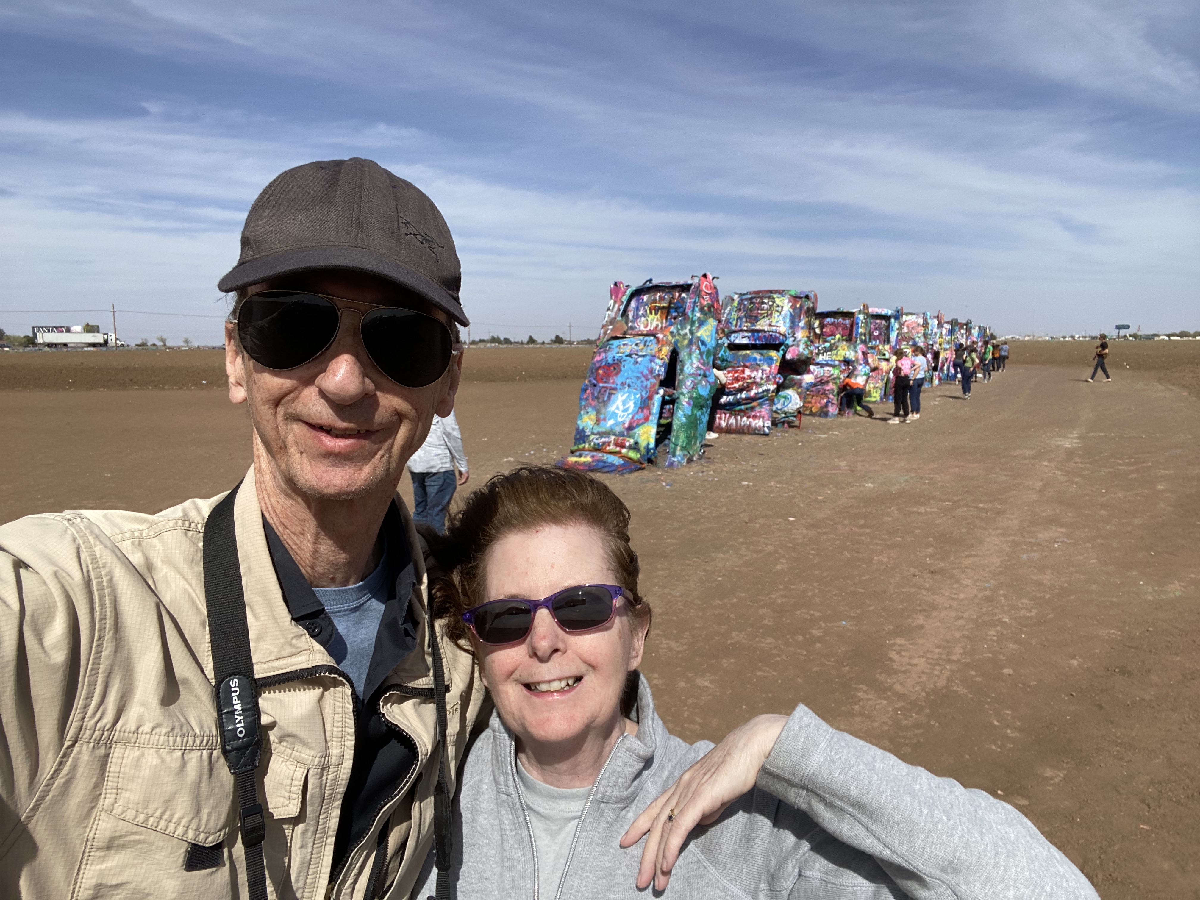 Heading to Texas, we took a long detour via Amarillo so that we might finally walk in the shadows (unless we arrived at high noon) of Cadillac Ranch. I would not say this “art” piece was high on our bucket list, but since it was sort of on our way…why not park it.