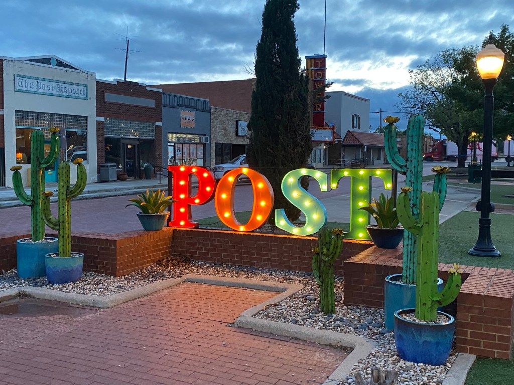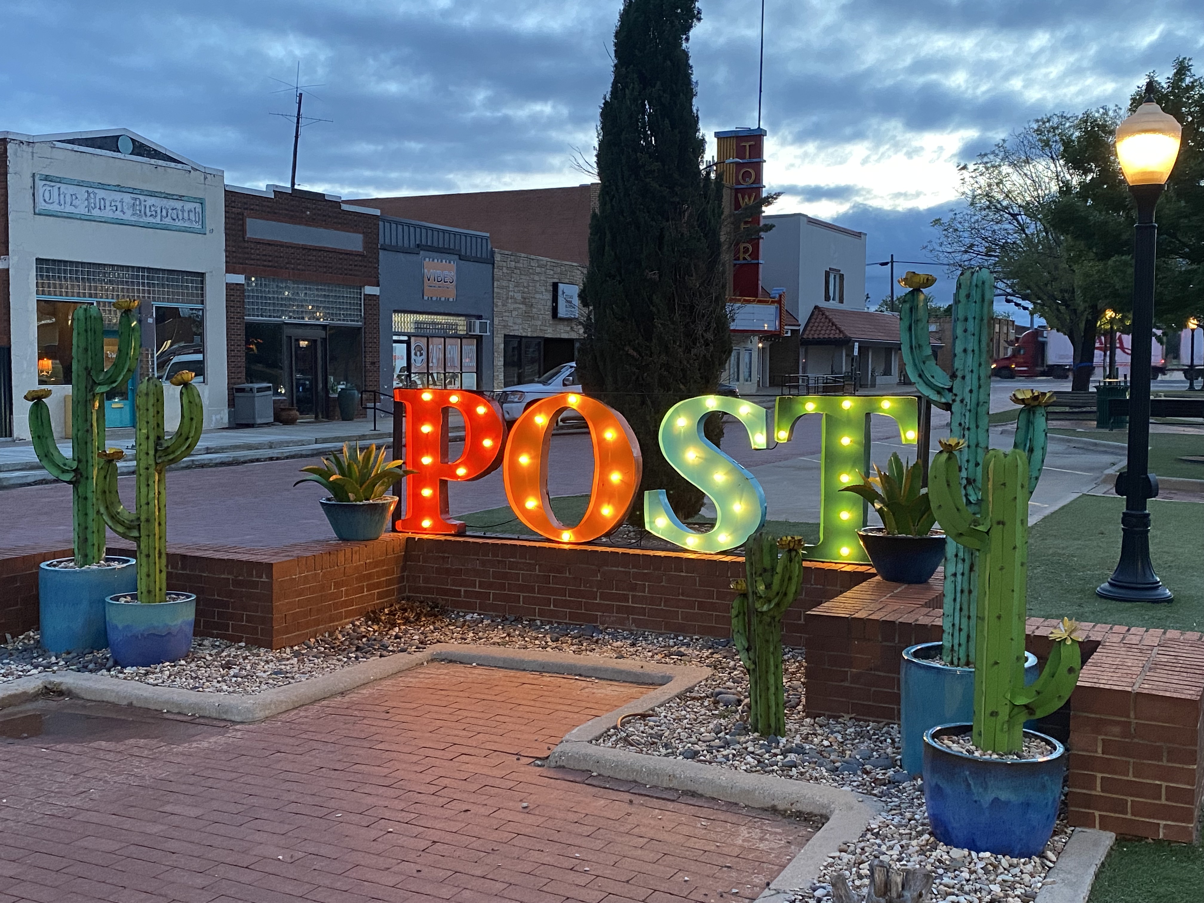 Arriving in Post later one evening, we found our restored Garza hotel/B&B on the main drag . Owners had worked for over 15 years to restore it. Rooms were decorated from red Bordello style, to cozy Yellowstone vintage furnishings as well as a more modern room with clean lines…that we chose.