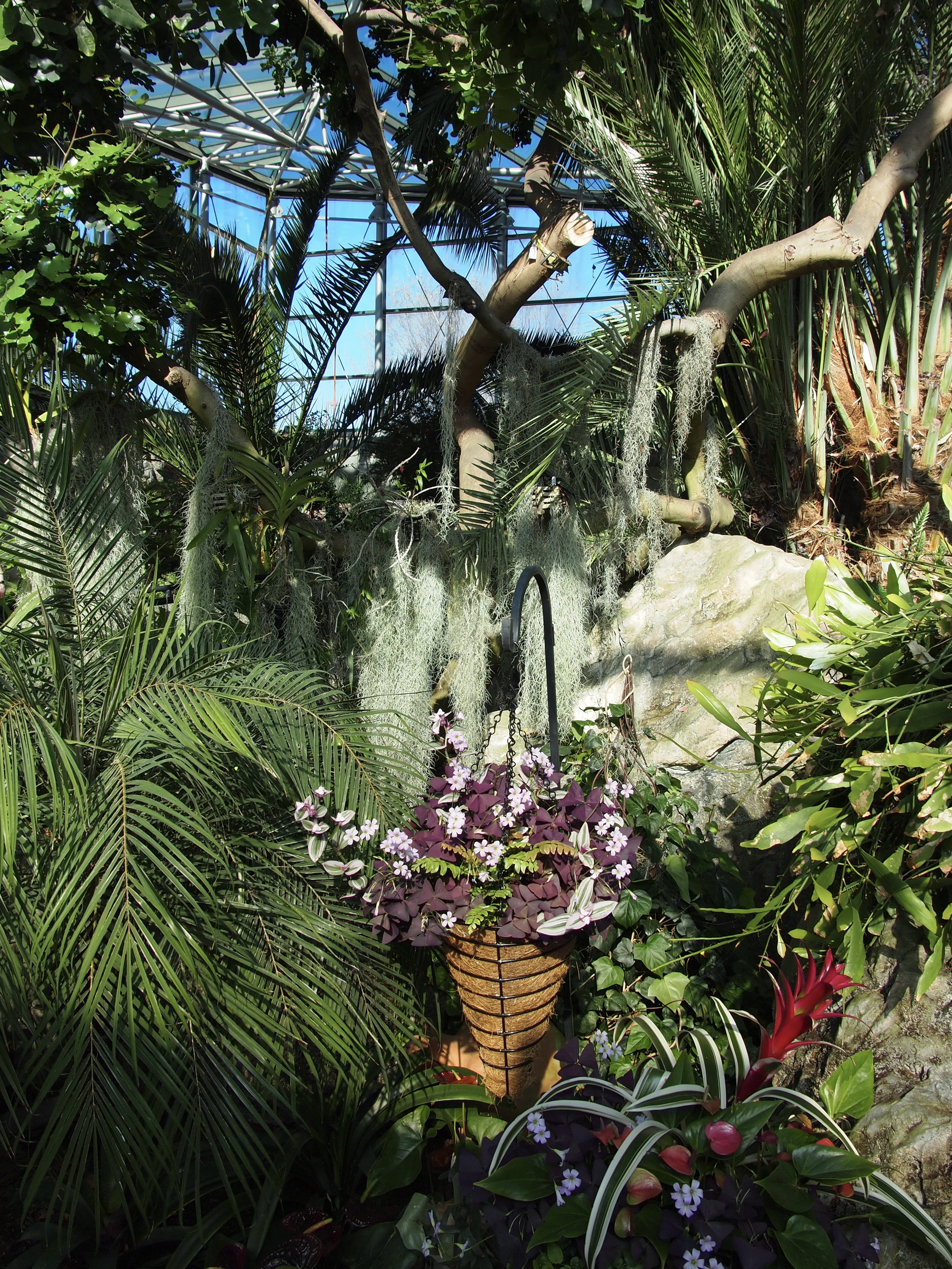 As a respite, we retreated to the Botanical garden. Food options were fatty starches topped with green sauce, with fatty starches as a side. Weighed down with the carbo load, we trudged into the garden…and were surprised at the extent of the place – indoor Mediterranean niche, indoor desert niche, Japanese garden with waterfall and large pond. Though the Heritage Farm was closed for a redesign, there was a large outdoor train set for kids. The butterfly garden was not all a flutter (nothing was emerging in this season) and the bug building was closed.