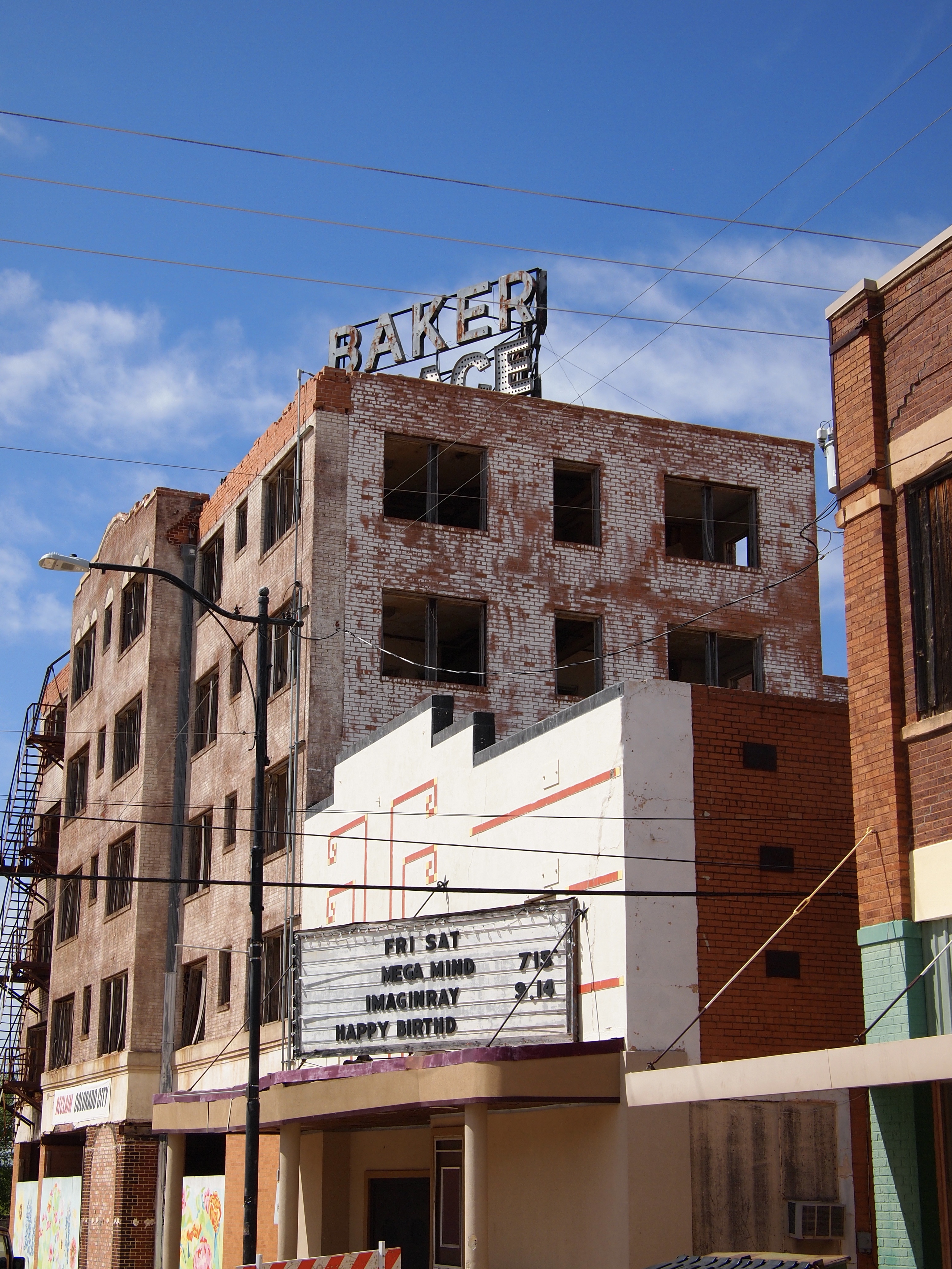 San Angelo was our next destination, and Michele eventually located a route off the main highway , using two lane ranch roads. Landscapes of wind turbines spread to the horizon, then scrubland with the occasional pumpjack oil pumps lending the wind a pungent fuel depot aroma. Ravens and buzzards circled overhead or clustered around road kills. We veered off Business route 203 to check out Colorado City. Though on first impression the main business area seemed deserted, a coffee shop and small boutique were showing sparks of life along the street. Ah…but yet again No Decaf! I was beginning to feel a bit emasculated. I was not drinking the real stuff so I must be made of lesser stuff. (I am reminded of a trip to Death Valley, when I called from the Furnace Creek Motel to the fancy Furnace Creek Inn up the hill, as to their tea time. The pleasant clerk informed me that I would need to contact the golf course. I did not know whether to suffer the humiliation of having to make the distinction between the delicate perfumed sipping tea served with cookies in an air conditioned lounge or feign interest in the macho hard driving tee on a 110 degree, sun baked fairway .)