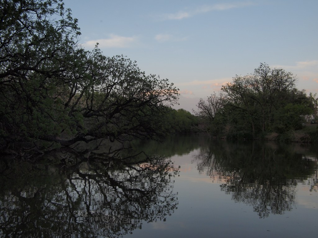 Back at our kitsch retreat, we walked down a block to the river walk at sunset…and it was moment from Hitchcock’s The Birds movie. Thousands of black birds were coming to roost along the river, calling and swirling and jostling for space. And then the Stillness.