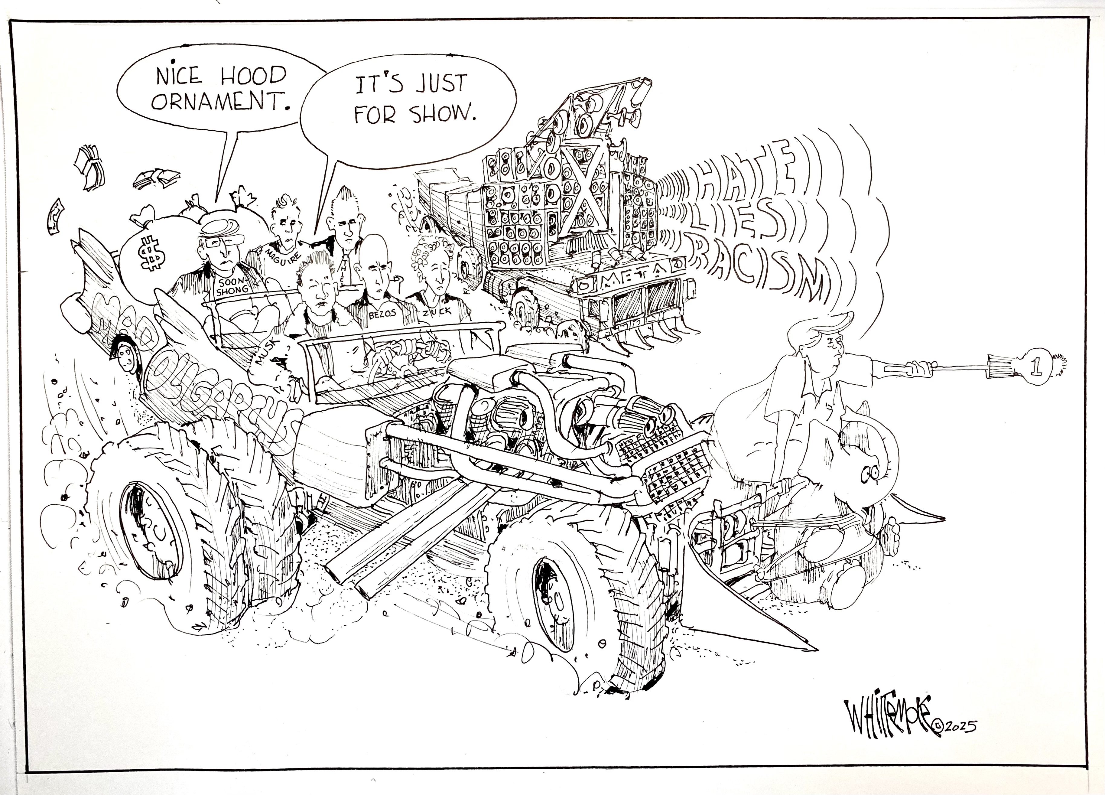 Cartoonist, and community organizer who has covered the globe as a doodlebugger, gandydancer, supernumerary steward, Able Bodied Seaman, Wireman, monkey man, Night Baker and dishwasher, Hobo, hitchhiker and husband.