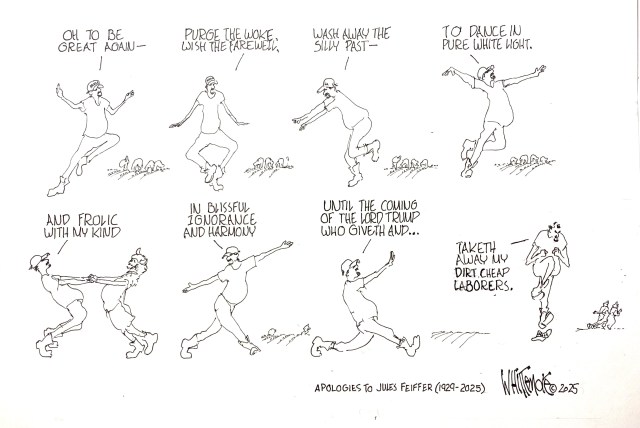 Cartoonist, and community organizer who has covered the globe as a doodlebugger, gandydancer, supernumerary steward, Able Bodied Seaman, Wireman, monkey man, Night Baker and dishwasher, Hobo, hitchhiker and husband.