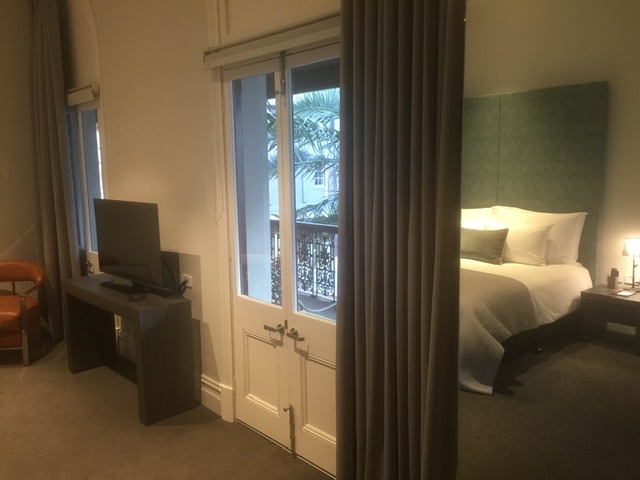 One step inside this spot and you recognize “Boutique” in every detail…almost to the point of being over the top. Old and new structures have been merged with some architectural finesse. Aboriginal art is on the walls. The rooms are not vintage though our room was in the older historic part. Our French doors led out to the porch where we had coffee and pastries from a shop across the street.