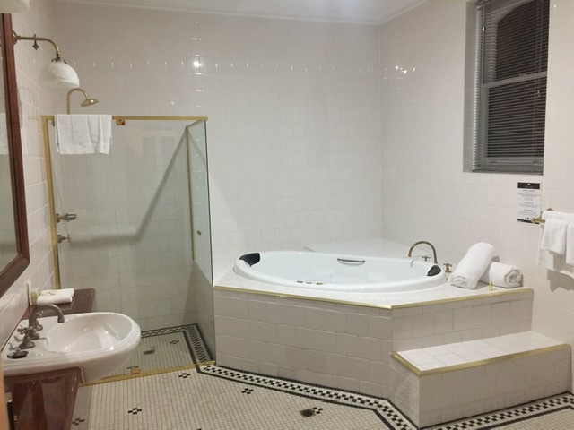 The first floor offers two dining rooms (big enough for wedding receptions), a pub, and casino. Just outside and next door over, is the bottle shop. The tiny historic district does not have much to offer besides a coffee shop so this spot is the entertainment hub. Dinner in the pub was pretty good so we toasted to our new out-of-the-way accommodations, and made the best of it.