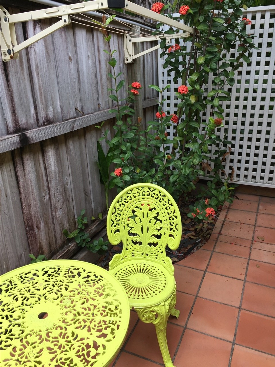 Our Port Douglas Motel was not hard to miss with its garish colored sign off of Davidson Street. It offered, “Retro-styled accommodation with old-fashioned hospitality.” You park your car right up to your door. The back sitting areas are intimate and nicely secluded, with vegetation screening off the large hotel next door. And Macrossan St with all the restaurants and shops is just around the corner in one direction and the beach is a block the other direction.