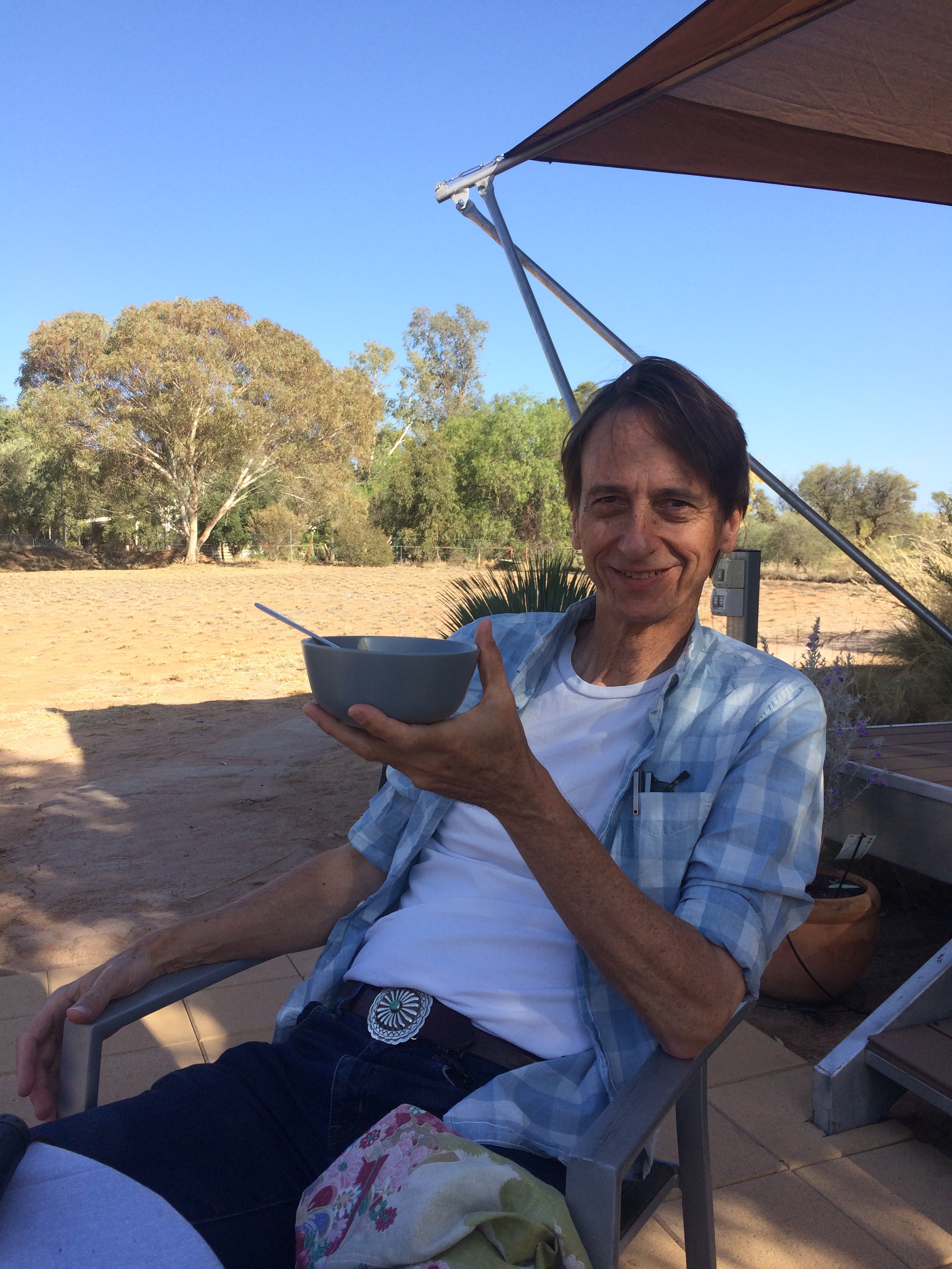 The two lounge chairs by the fire pit gave us grand seats for viewing the exquisite Milky Way. There was some glare in lower night sky…apparently from Pine Gap, the US-Aussie listening post for all things Top Secret. That was over the ridge and worlds away.