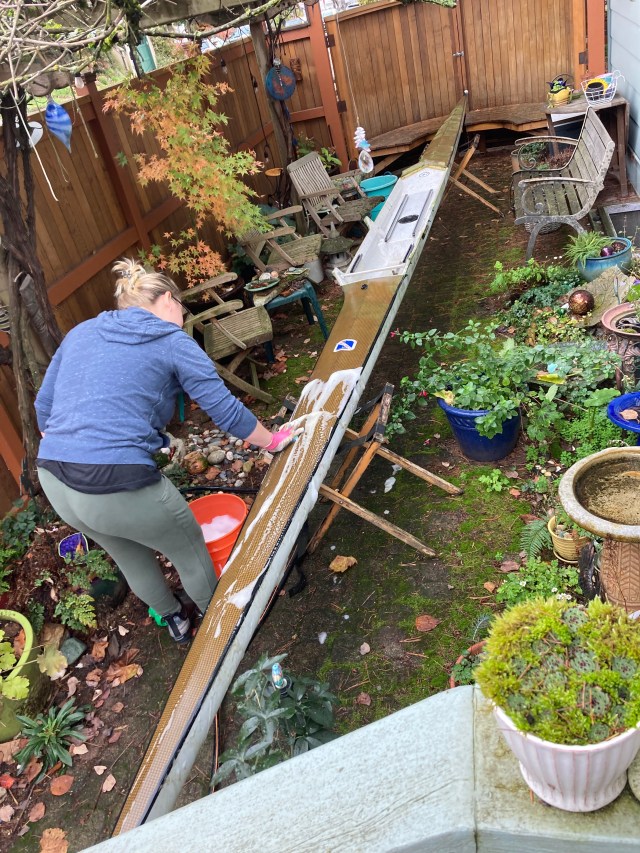 So I made a major decision. On hearing that Ben’s daughter Mackenzie, had started rowing on Green Lake, and having tried sculling, she was enthralled…I gave her the boat. Sure, I wanted to row again but I had convinced myself that a didn’t need a racing shell. It was time to invest in a more stable boat, given the conditions around the NW open water.
