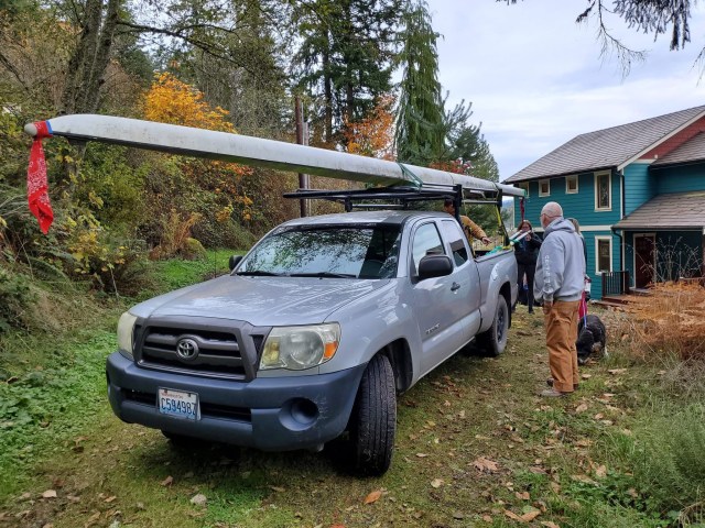 Yet the only times I sat in the boat were on rare summer visits after traveling back to Burlington from Seattle. My solution – ship it out west. Easier said than done. My wife’s friend rowed with the Mt Baker club and she was going to participate in the Head of the Charles regatta. She offered to help if I could get the boat from Vermont to Cambridge, Massachusetts. I managed to contact the University of Vermont rowing club, Vermont Rowing, and they agreed to pick it up and haul to Cambridge. Years before, my dad found a farmer with property on the Lamoille River who allowed Dad to store his shell in the barn. The UVM crew found out about the spot and built racks there for their boats. So we had a link. In Cambridge, the connection was made and the boat delivered to Pocock folks, who then hauled it to the NW (for a fee). The last leg was on top of our Explorer down to Seattle.