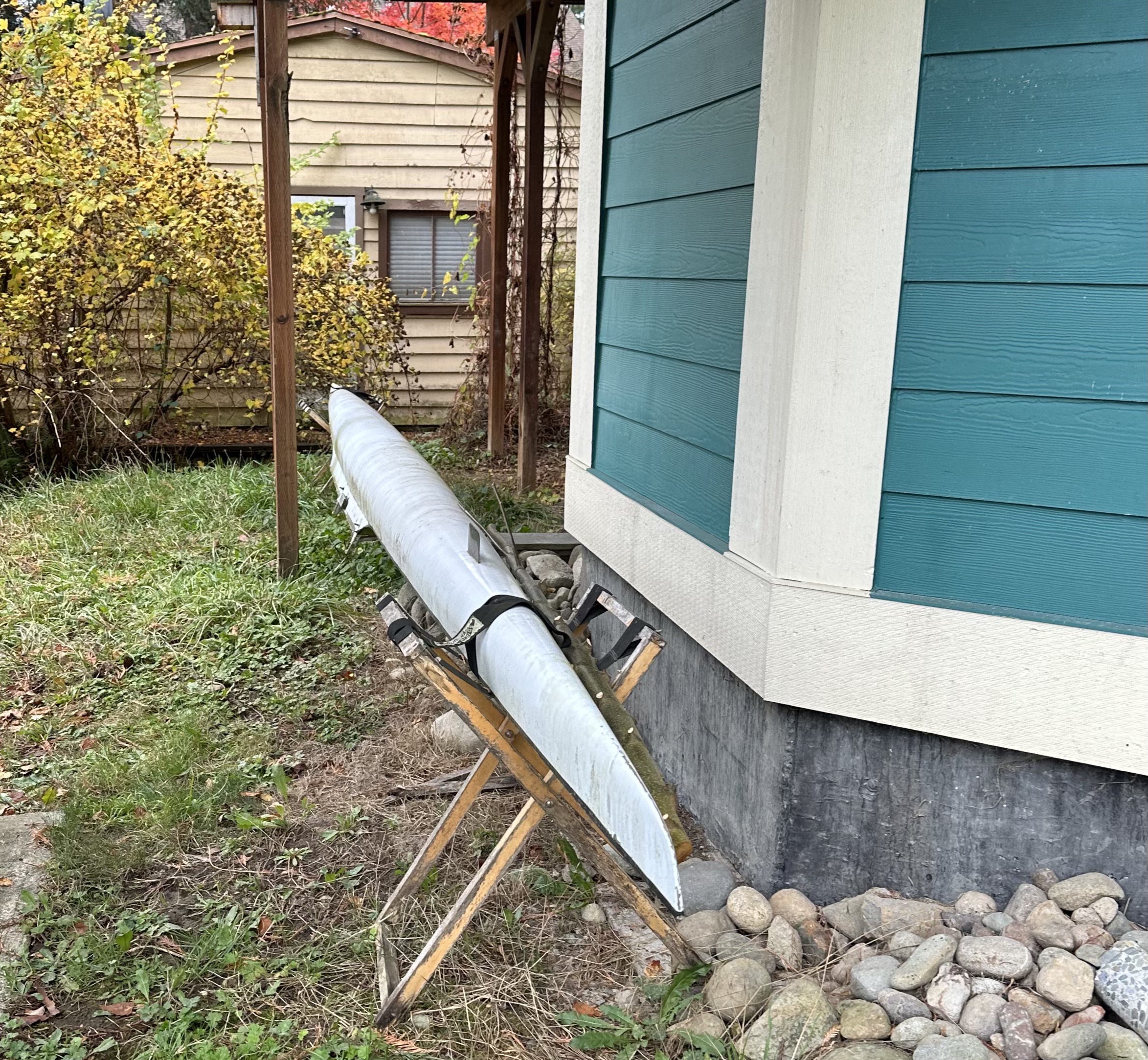 I rejoined the Lake Washington Rowling Club…at a cost. When I first joined in the 80’s , the fee was $75. They outgrew their boathouse on Lake Union and so requested members help fund a new boathouse…with a $5000 investment. I lacked the funds and besides, the rate of return was worse than a savings account. When I rejoined , the annual fee was $800 and I would have to pay even more to store Nut Shell 2. Given the boat’s ancient riggers and worn look, I decided not to embarrass either one of us by putting up on their racks.