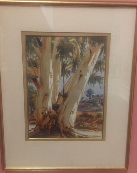 Albert Namatjira was a Western Arrernete artist and also cameleer. Afghan and Pakistani cameleers worked the track from Maree and Oodnadatta to Alice Springs And the inscription on the trunk of the tree is Salam, a reminder of those passages.