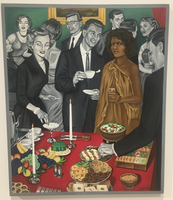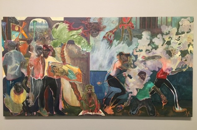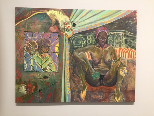 Michael Armitage apparently does not like to read labels and prefers you stand in front of his work and immerse yourself in the moment. This work refers to the mass protests during the 2017 elections in Kenya and has references to celebrated artists, e.g. Gauguin…but hey, be in the moment. Besides, Gauguin is facing #MeToo critical reviews for his treatment of women in Tahiti so just maybe gloss over that reference.