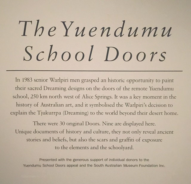 Though the decorated skulls were weird and wonderful, the major attraction for us was the original Yuendumu School Doors.