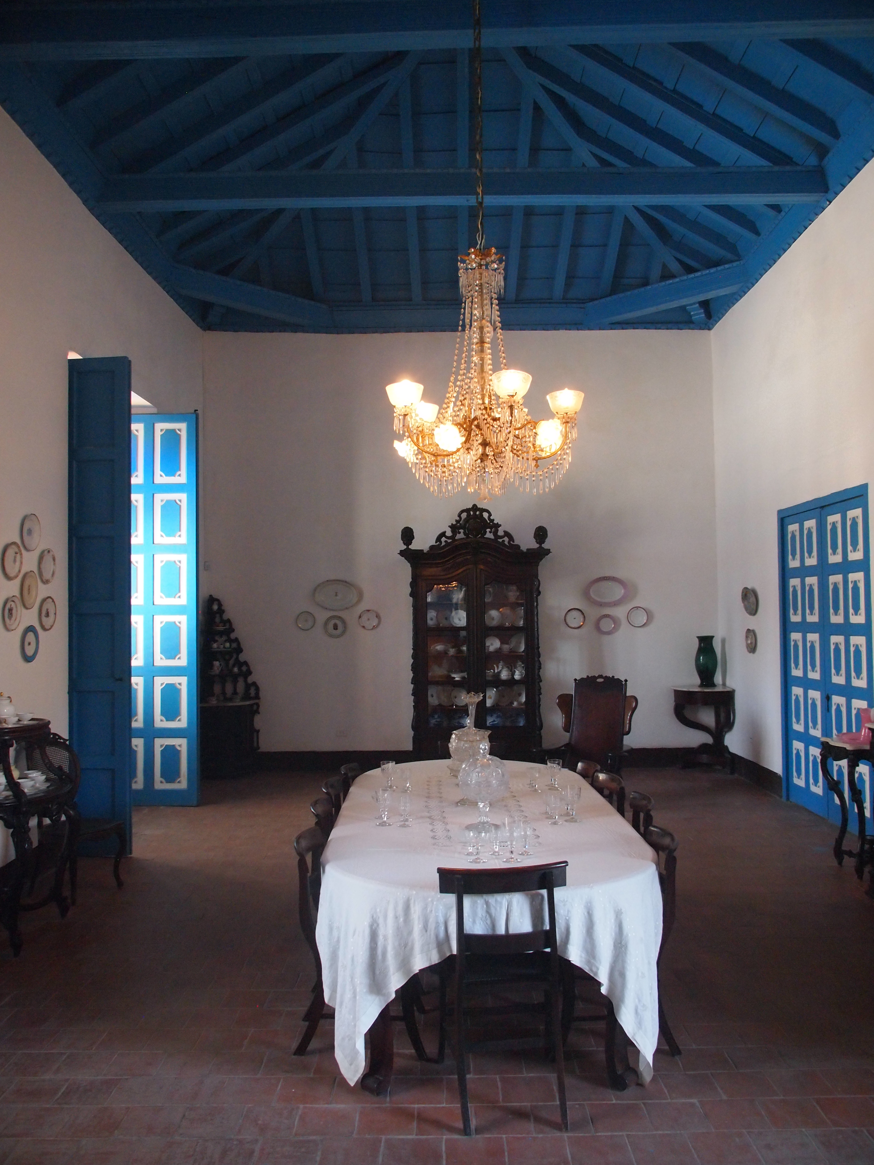 Off to the town square, Parque Cespedes, and walking around the Cathedral (built in 1522 and holds the remains of Diego Velazquez). The oldest house in Cuba, the Museo de Ambiente Historica Colonial, Diego Velazquez’s residence, has classic heavy wood furnishings and unique nick-knacks including a porcelain Misen figure of black sambo. Wood screens covered the windows allowing for privacy but making the rooms a bit claustrophobic.