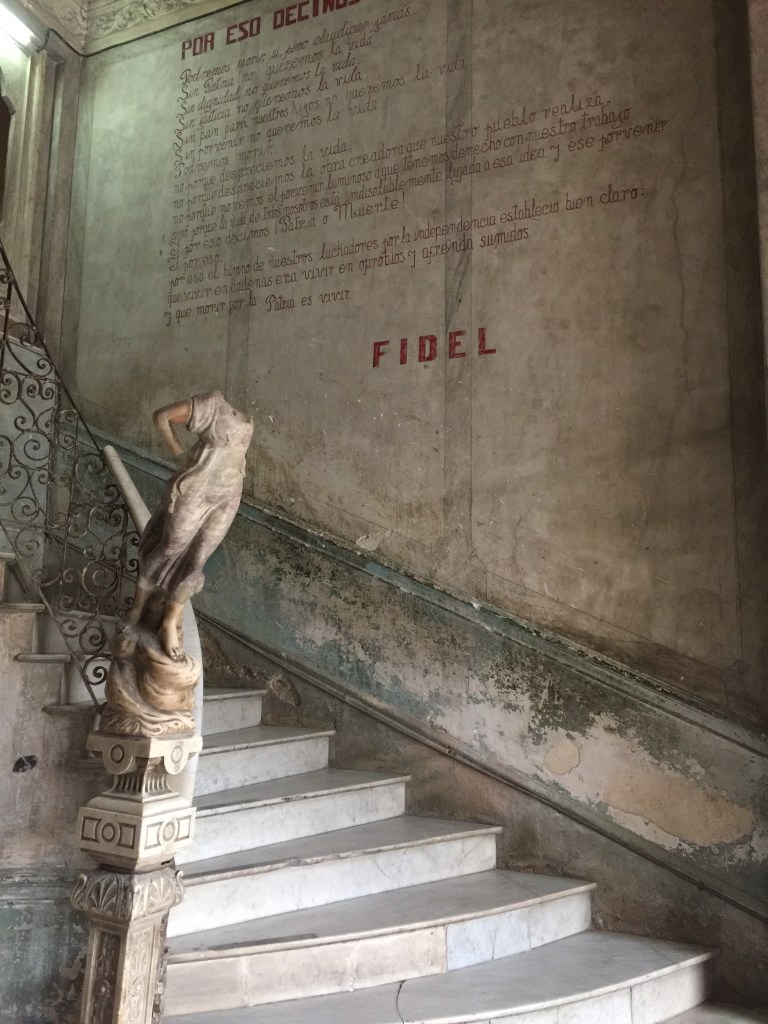 The Dean of the School met us and escorted us to a room on the second floor. We passed students congregating in outdoor corridors readying for exams, distracted only briefly by the gringos. The performance arranged for us included an elementary student on violin, a teen with long hair playing guitar, an Afro-Cuban teen on piano with rag time jazz interludes, and a very accomplished violinist with extraordinary dexterity. For the finale, the guitar player and violinist performed an improv piece. We gave them a stirring round of applause (just the two of us).