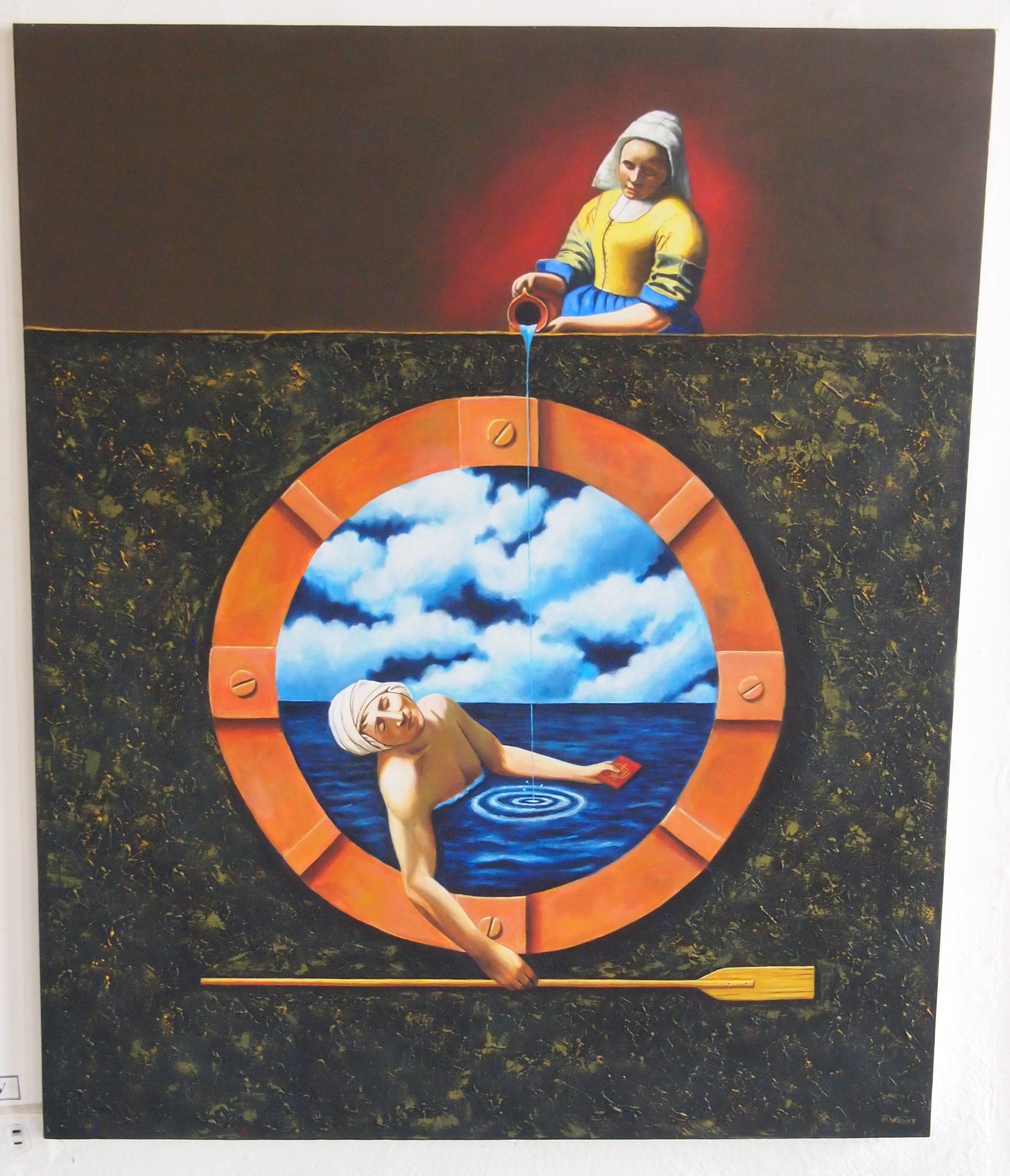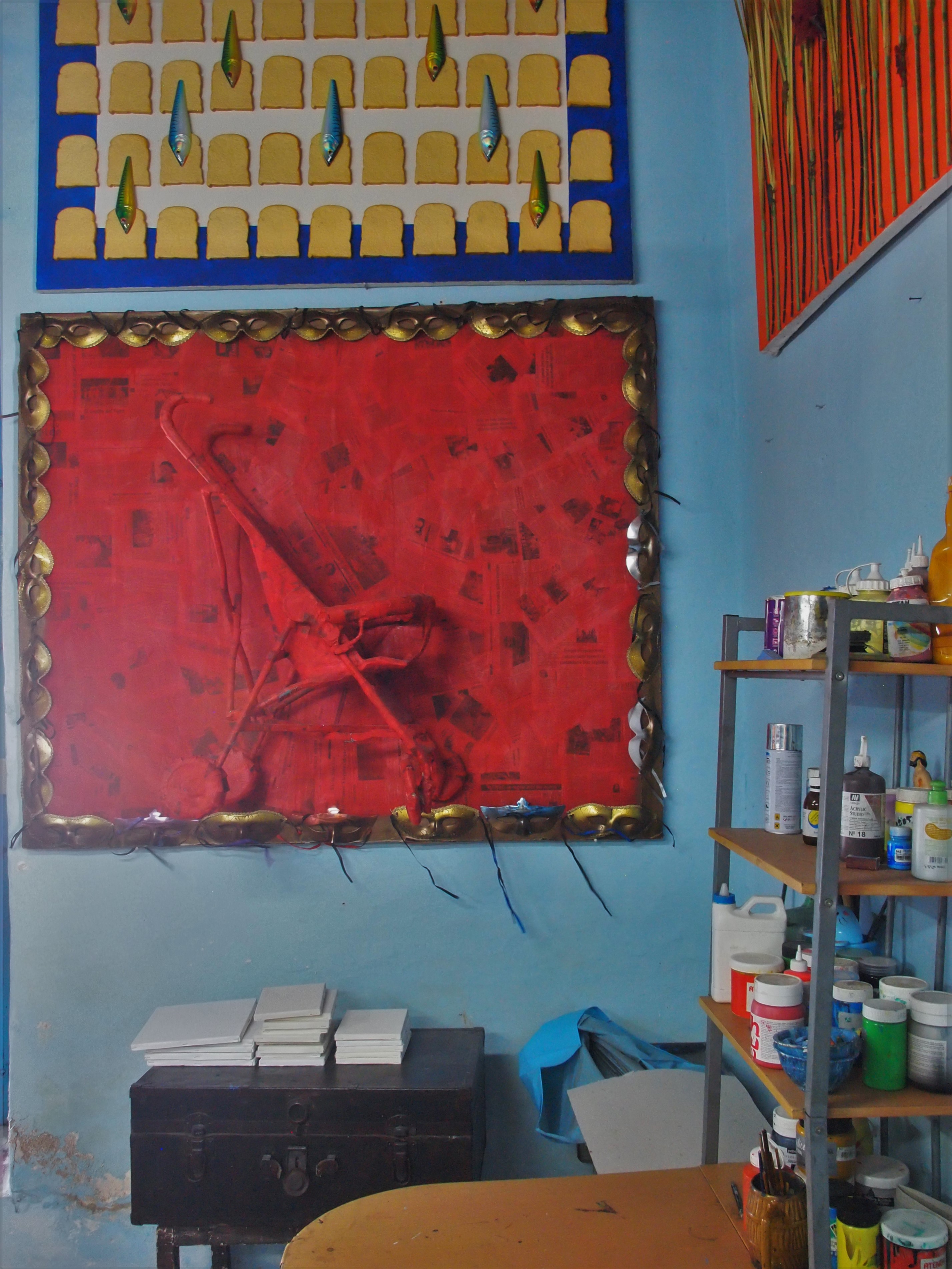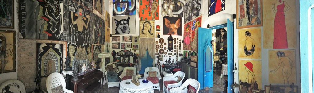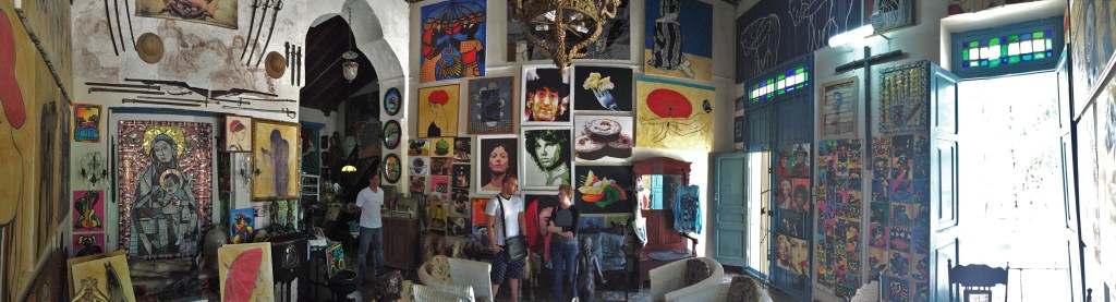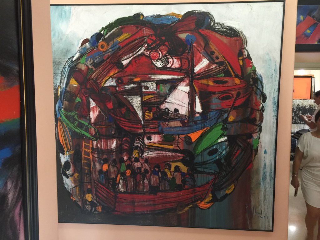 We really liked one artist’s work that referenced the boat migration to Florida, and when an image was shown at a high but maybe negotiable price ($2000) we asked to see it…which meant going to another home, even bigger with massive painting piled against walls. When they pulled out the piece, it turns out someone had forgotten to mentioned one zero in the price. It was $20,000 dollars. We tried very casually to hide our gasps and coolly suggested we would think on it … and beat a hasty retreat back to the first home to look for tiny yet representative pieces.