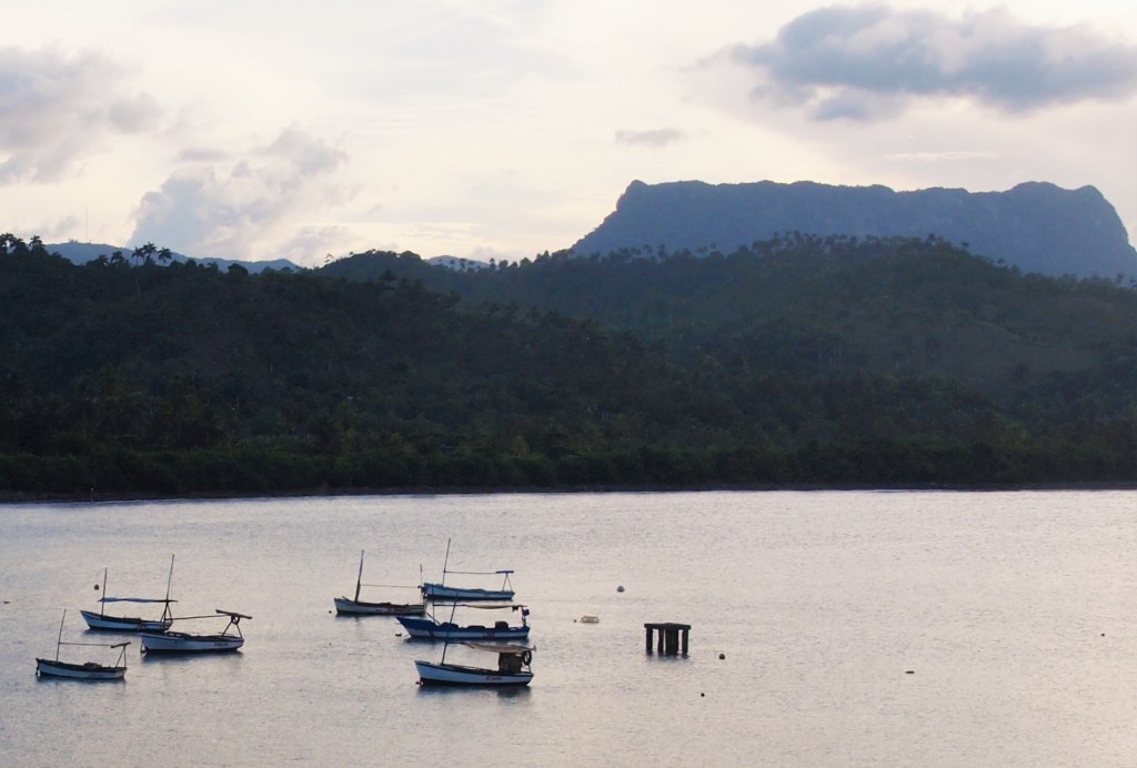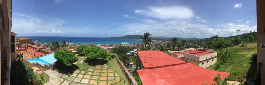 Finally, we passed through Baracoa and up the hill to Hotel El Castillo. We opened the curtains and it was Awesome (and I do not use that word lightly). This was a veritable eyrie. We could see El Junque (The Anvil) and the entire bay below. Small fishing skiffs with brittle masts clustered off the closest bay shoreline. We seemed to have dropped in on a movie site for the Old Man and The Sea.