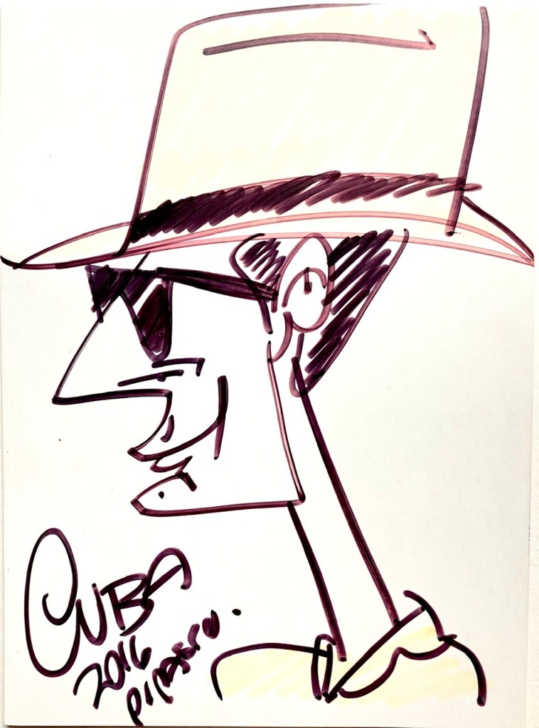 Book sellers filled the perimeter of the Plaza de Armas. A poet was giving an outdoor reading. I crossed over wooden street cobbles into the plaza and as Adrian talked about the fort, a guy was rapidly sketching a caricature of me…for which I paid 5 CUCs. On the port side, was a small Doric style building, El Templete under restoration. Michele Obama had planted a ceiba tree in front.