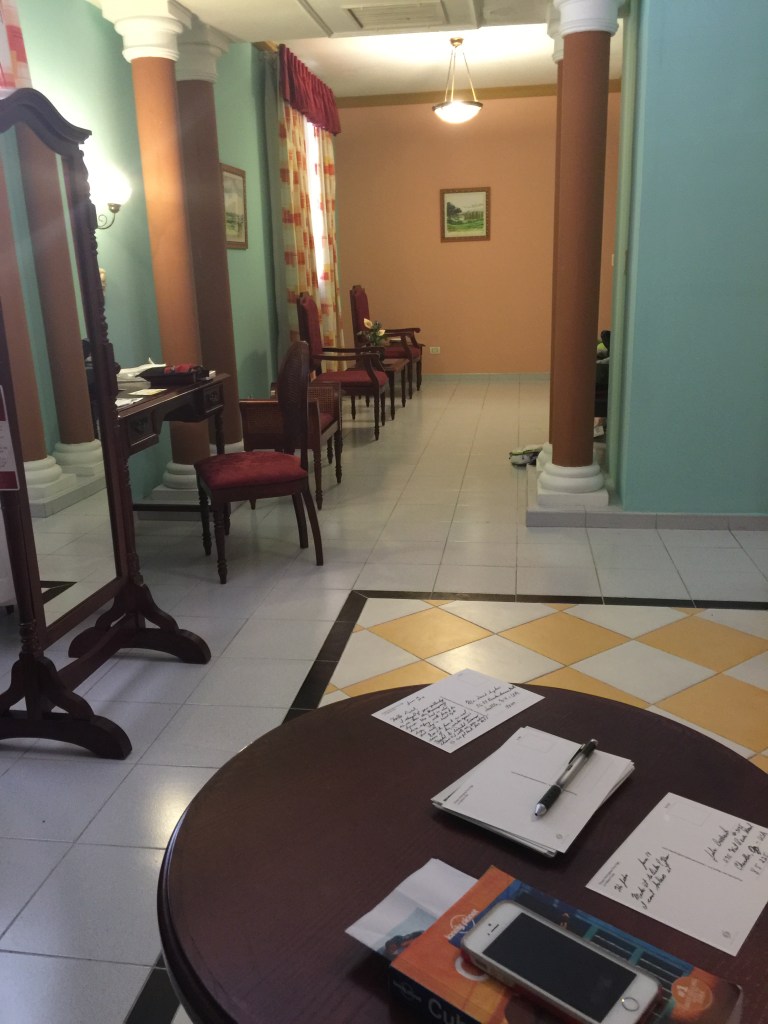 I met Miguel at the Parque Central who was hawking one-hour tours in a classic 50’s Oldsmobile for 14 CUCs. He explained that the structure being set up outside the Capitol building was for a salsa dance event. We chatted about the US, and he claimed to have relatives in Oklahoma. Now this should have reminded me of a line from two men in Delhi that Michele and I ran into in a tourist hotel. They too opened up the conversation asking where we were from and then managed to mention they had relatives in the States. They were hustlers and before luring to share tea (most likely with sedatives diluted in the tea) we booked out of there. In this case, I just kept on sharing information, oblivious to the game about to unfold. When he asked about my hotel, I struggled to remember the full name, but he managed to recall it. Now that our conversation was proceeding smoothly, he offered up a hot tip: for the next 30 minutes before closing, cigar factory workers were allowed to sell cigars half price. There is a worker’s home just three blocks away. Having no interest in smoking and only slight interest in cigars, I bid him a fond farewell but headed in the direction he mentioned. Not two blocks away a guy passes me at an intersection and mid-crossing he takes off his sunglasses and says, “Hey, I know you, you’re staying at the Hotel Armadores de Santander. I work there, remember me?”. He did not look familiar but then again, I did not know the entire staff and not wanting to be an Ugly American, I shook his hand in greeting. “What are you looking for?” I mentioned I was curious if there was a cigar sale nearby. “Here I’ll show you!” As he guided me down a street, he happened to mention, “My cousin lives up there in that building, we should have coffee afterwards.”