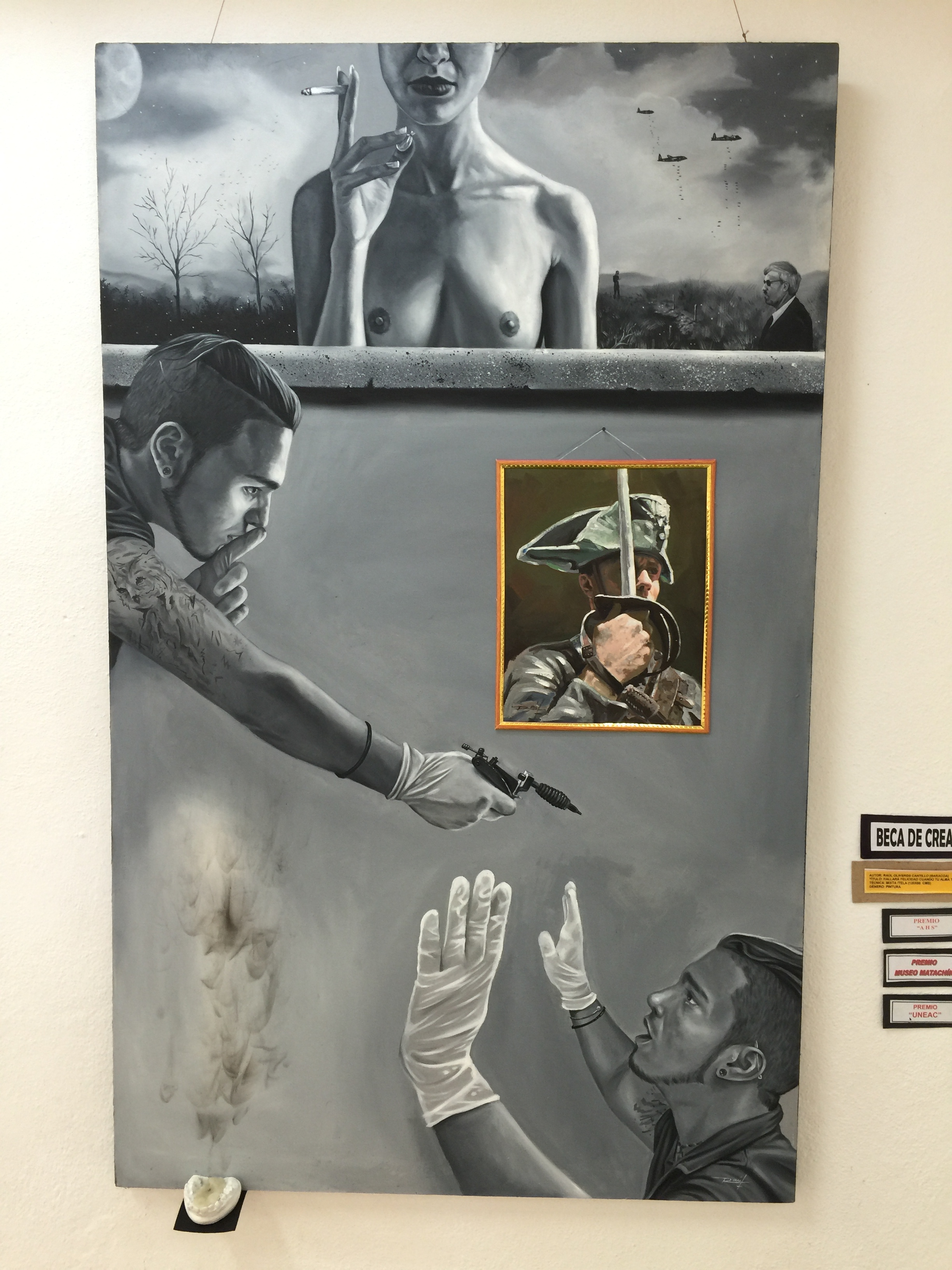 Touring a gallery of student art, the artists’ work showed eclectic styles though some had a political edge.