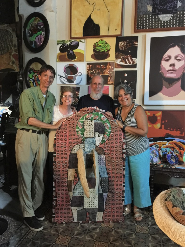 Visa control has a photo stop and at first, they refused to process Michele’s due to “Eastern Airlines was not activated.” No idea what that was about but in a few moments we were through. Then security- they unrolled the one art item marked “painting” (thank goodness we had the documentation from Baracoa). The customs lady never asked about the other art and I was relieved since I did not have any other documentation.