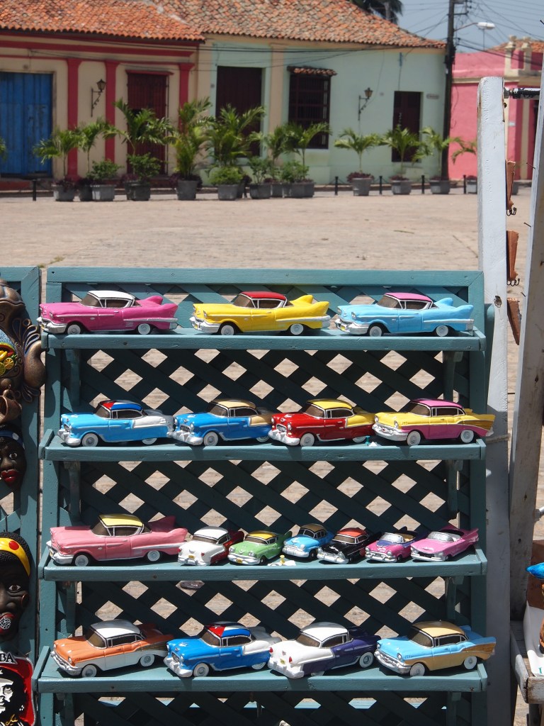Our hotel did not change money, and we were directed to a market nearby where you get 87 CUCs for $100 US. The foreign exchange booth was tucked into a large art market crammed into an old waterfront warehouse. Paintings were hanging from booth walls, or leaning several deep against whatever vertical surface was available: paintings of classic 50’s cars in Havana cityscapes, nude Cuban women draped against tropical backdrops, a few modern abstracts of dubious distinction, Cuban peso notes with fish painted on them and more 50’s cars painted on newsprint. We tried bargaining for the latter. The seller wanted 2 images for 25 CUCs, and after bargaining, he offered 2 for 24.99 CUCs. We needed to sharpen our skills.