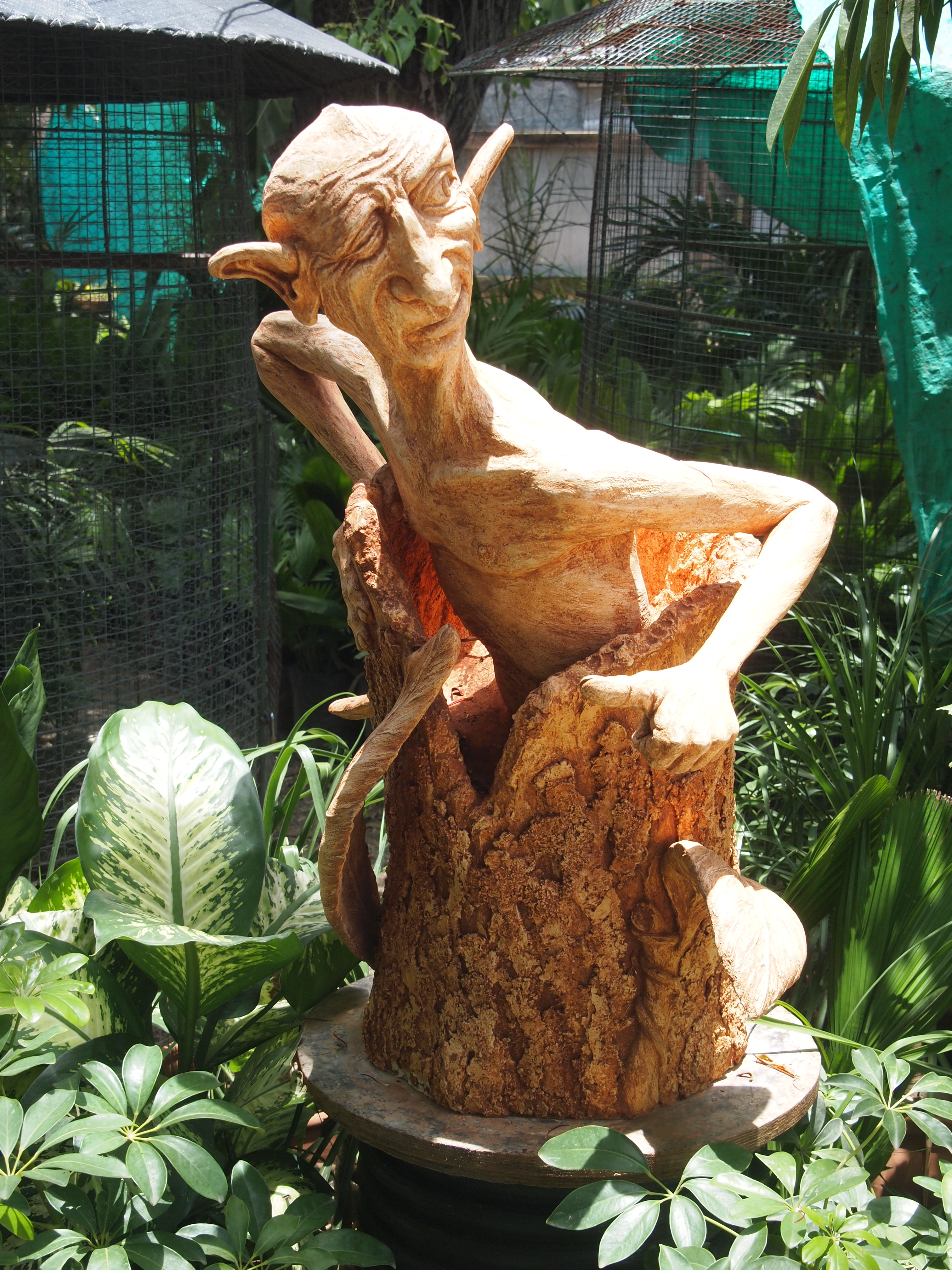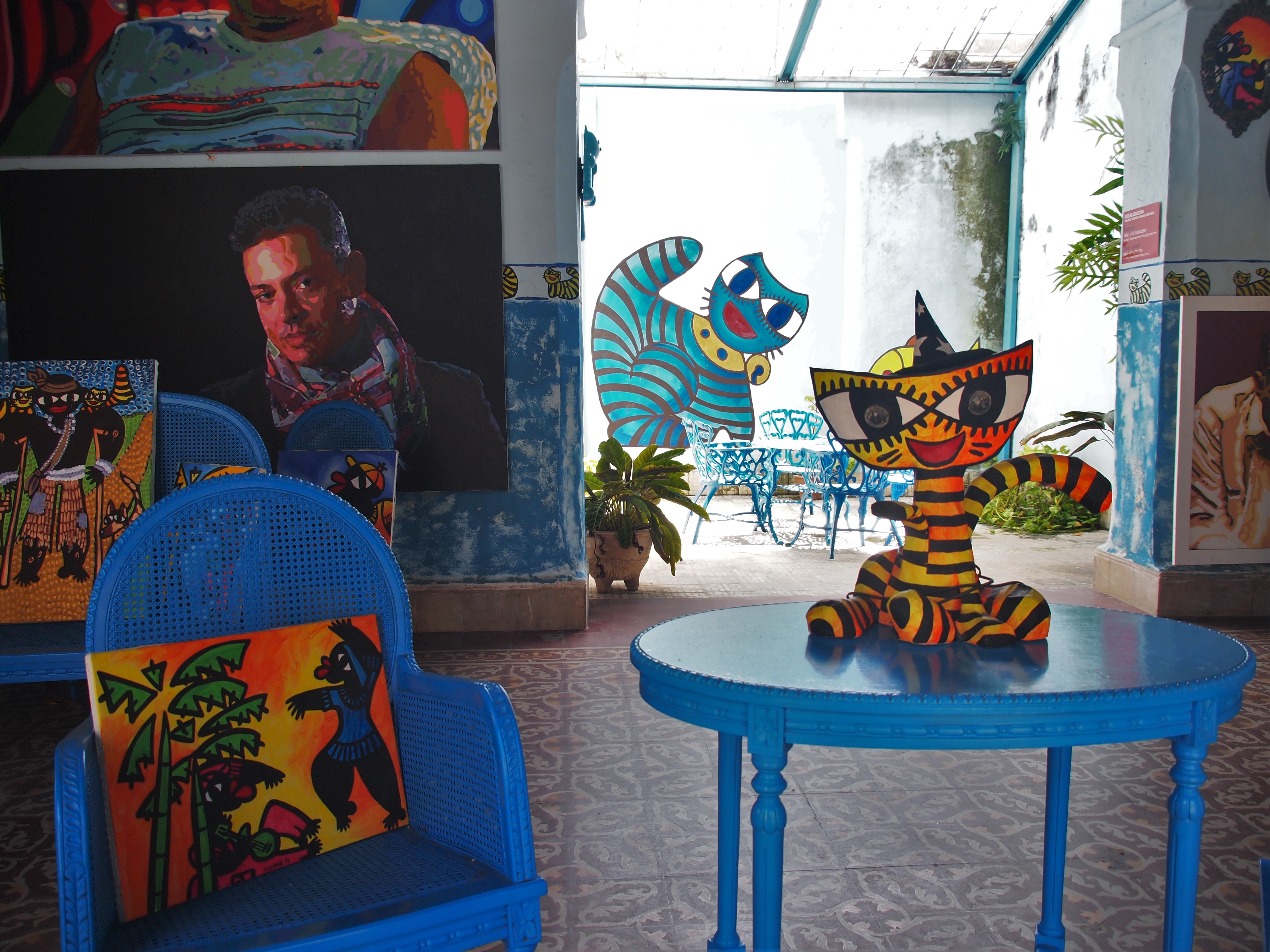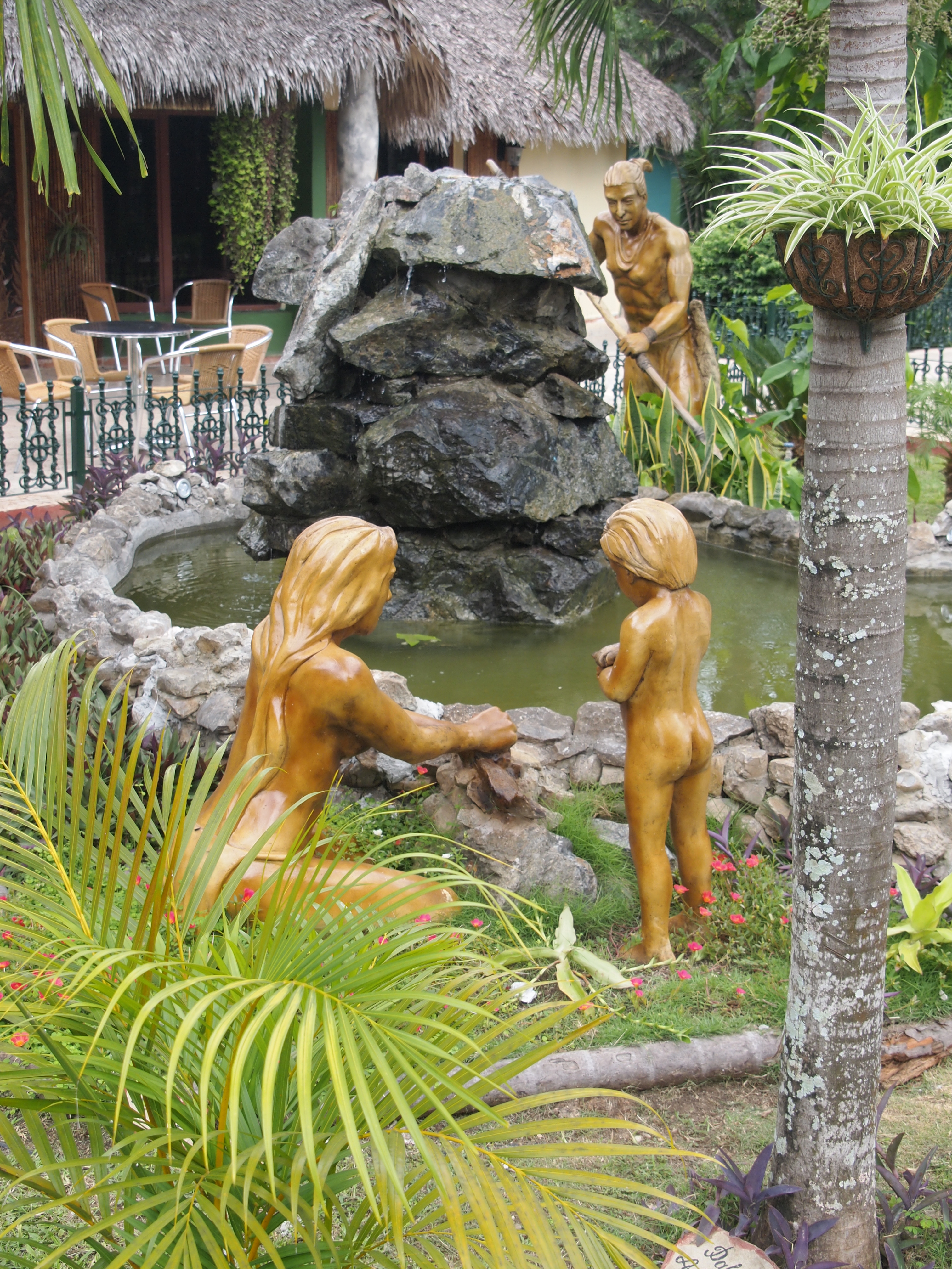 Though the NaturArte was a restaurant with an excellent menu, we gained entry after the lunch rush to see the site. Bizarre sculptures (visualize Lord of the Rings Gollum like characters) greets the visitor. A large bird aviary had two Cuban Trogons, the national bird of Cuba. The bird’s multiple colors are the same as in the Cuban flag: white throat, red belly, blue back feathers. Inside the aviary, many hummingbirds darted in a frenetic feeding trajectory, one landing on Michele’s finger to feed. And then there were the cages with Parrots, a Belgian and German Shephard, a Cuban Rat, and Guinea Pigs. A very odd collection.