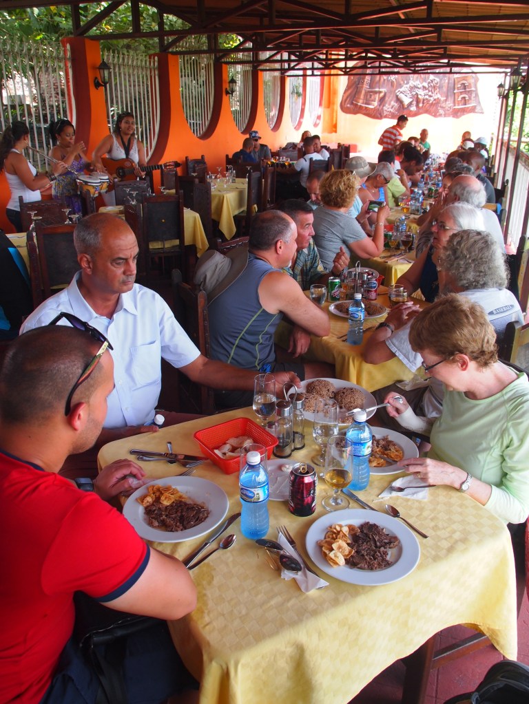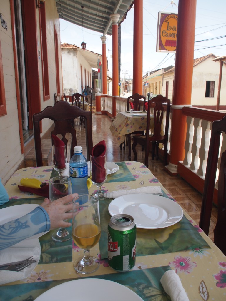 We ran into a busload of Americans who were anxious to find a place with a TV to watch a soccer match. Our bar in the hotel had one so we agreed to rendezvous up there later. Arriving early, Michele and I had drinks on the balcony until the soccer fans arrived. But they did not stay long. Is it something we said? We found out the next day that one traveler on the tour was African American and the bar refused him service, so the whole group left, boycotting the bar. I wish they had let us know, because we just keep sipping beer and mojitos blissfully ignorant of the overt racism. It was odd too since this area of Cuba has a higher percentage of Afro-Cubans, so intolerance would seem out of character for the community. Was this not the “Heroic City of the Revolution”?