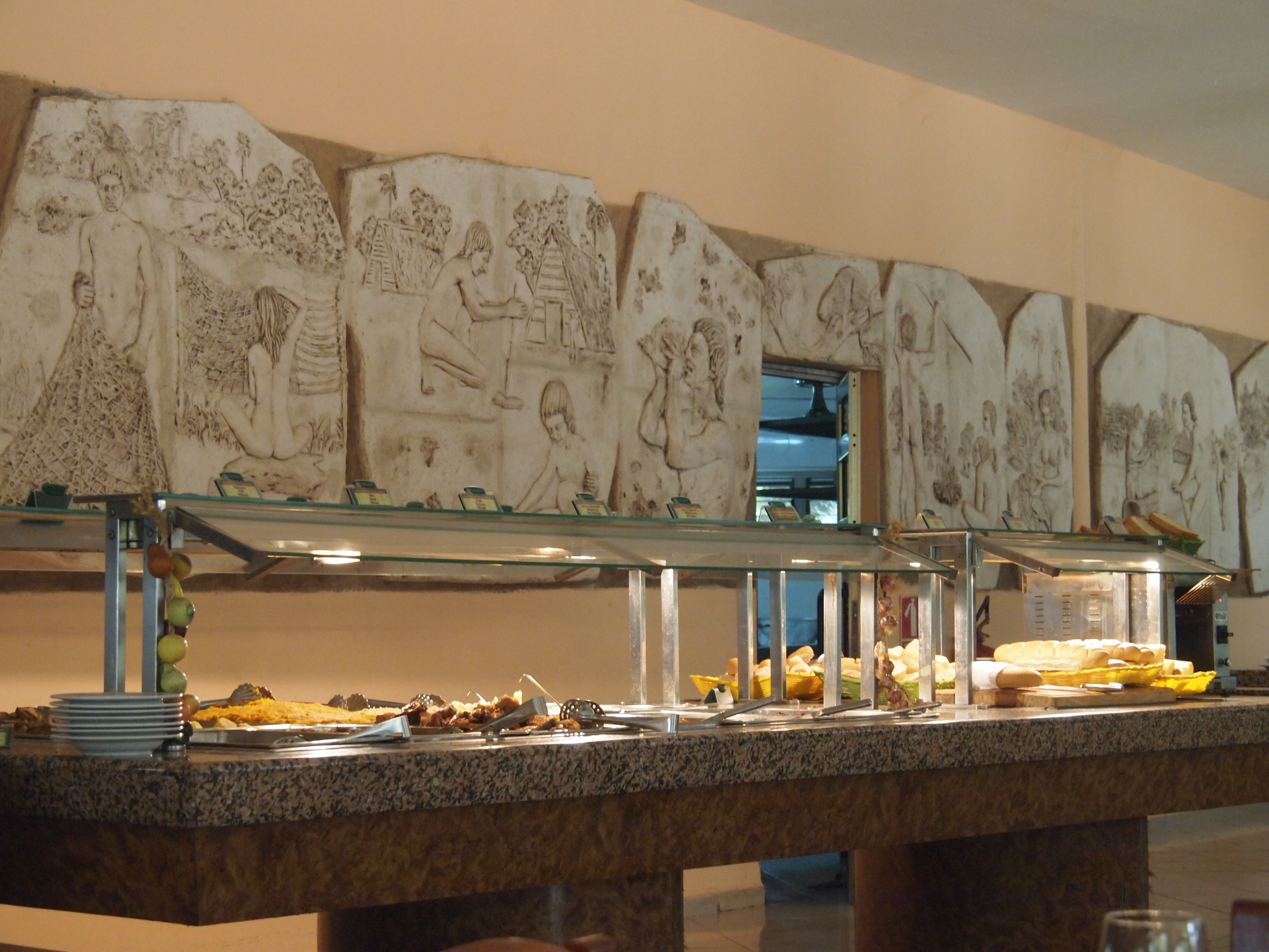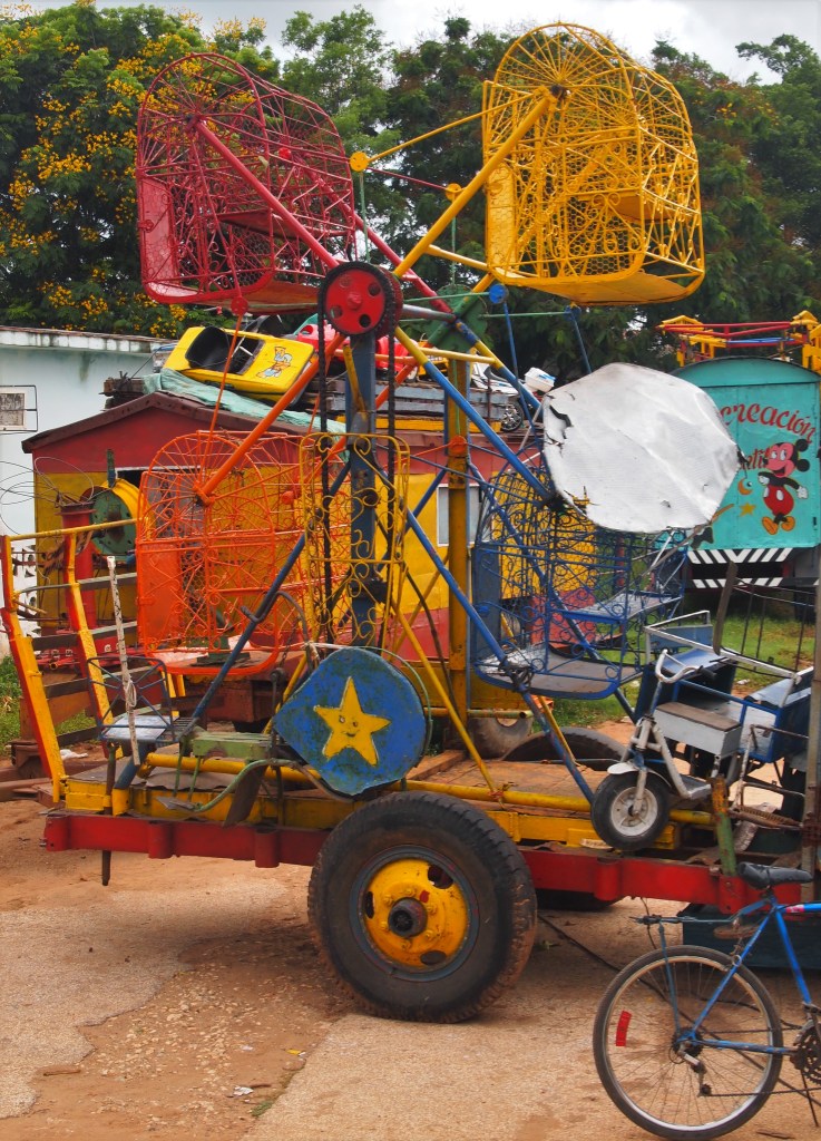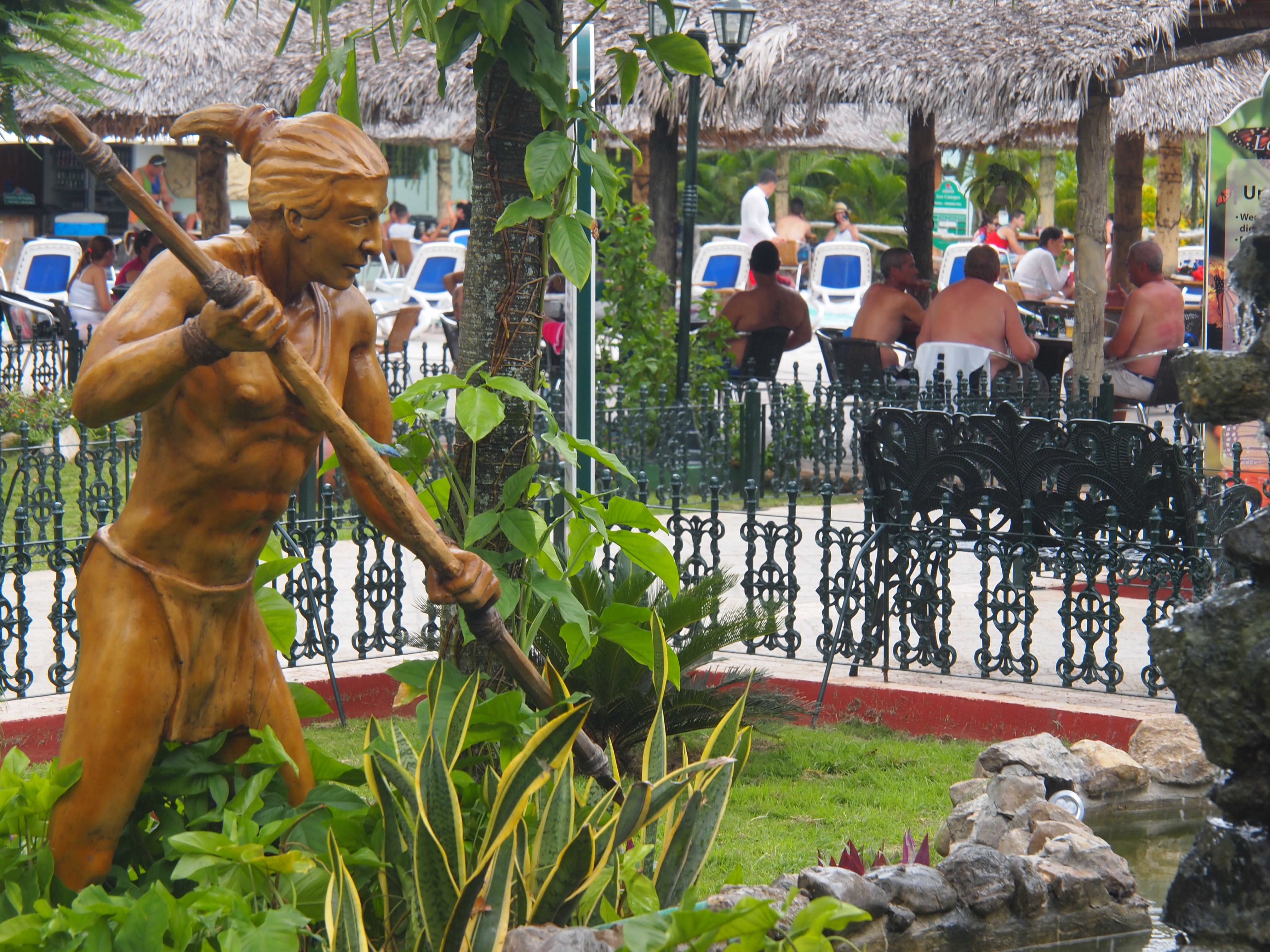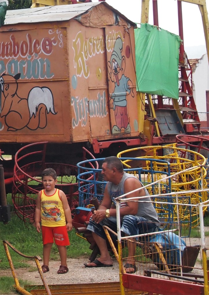 We lunched at Cubanacan Los Caneyes, (Indian Camp Hotel) in Santa Clara complete with thatched roofs, wooden sculptures of “primitive” Indian families in the courtyard (no Cigar Store Indian in sight). A live alligator was a nice touch. Lunch included a buffet with red and white sauce on pasta, and dessert was sundaes with multiple sauces!!! Adrian had two bowls.