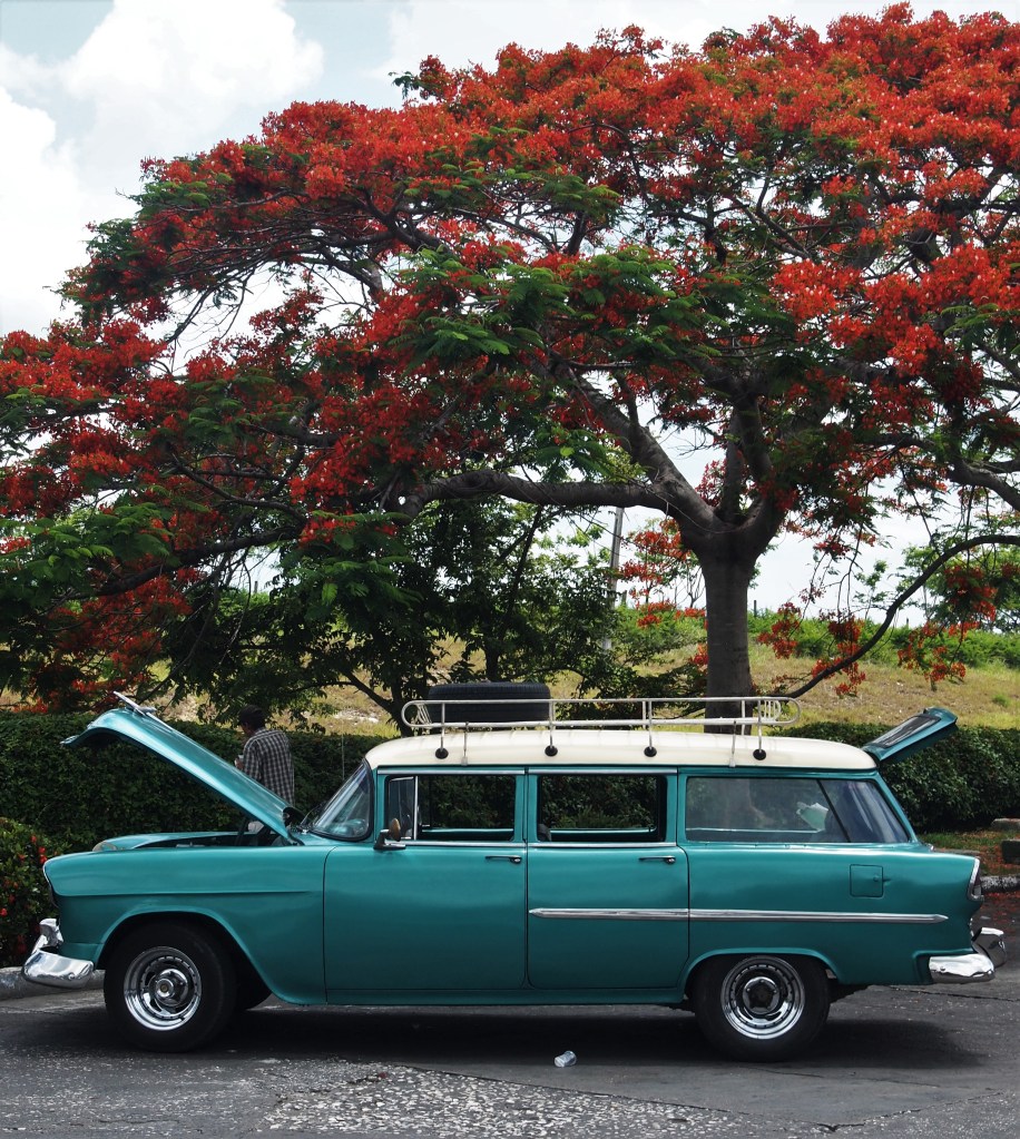 An enormous Afro-Cuban guy at the door arranged for a ride back to the hotel. The driver was waiting on other dinner guests but figured he had the time to drive us in his 1955 Dodge and pick up some extra cash. Both the driver and the guide told us on the way that they both made 10 CUCs while chauffeuring their Kentucky guests this evening. Asking about his classic car, the owner said the body was original but under the hood was a Korean Mercedes engine.