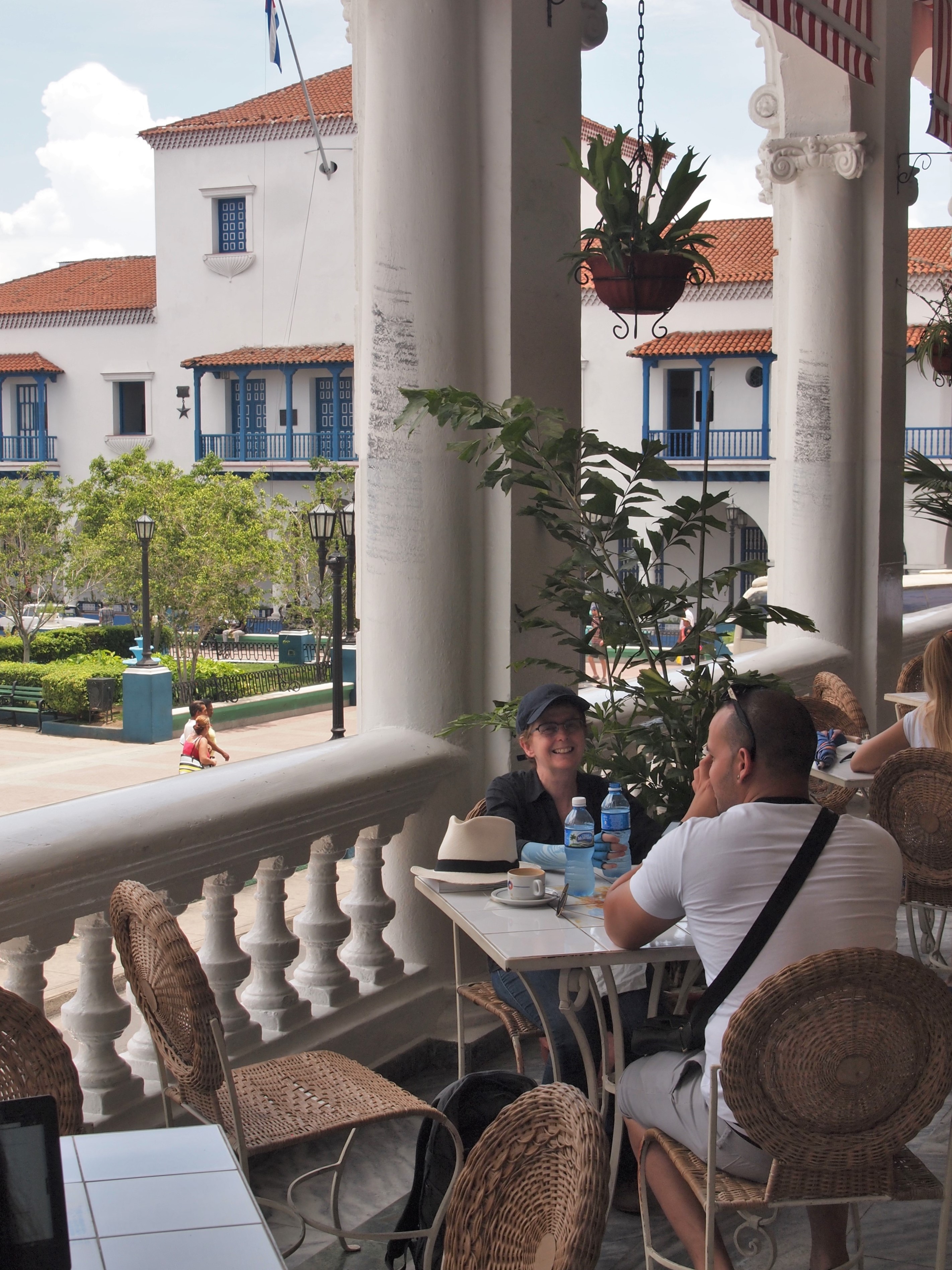We managed to buy some cigars in the hotel and then sat for coffee on a porch overlooking the Parque and the Ayuntamiento (City Hall) balcony where Fidel Castro delivered his victory speech on January 9, 1959. We did not smoke the cigars in honor of Fidel. Hemmingway probably did.