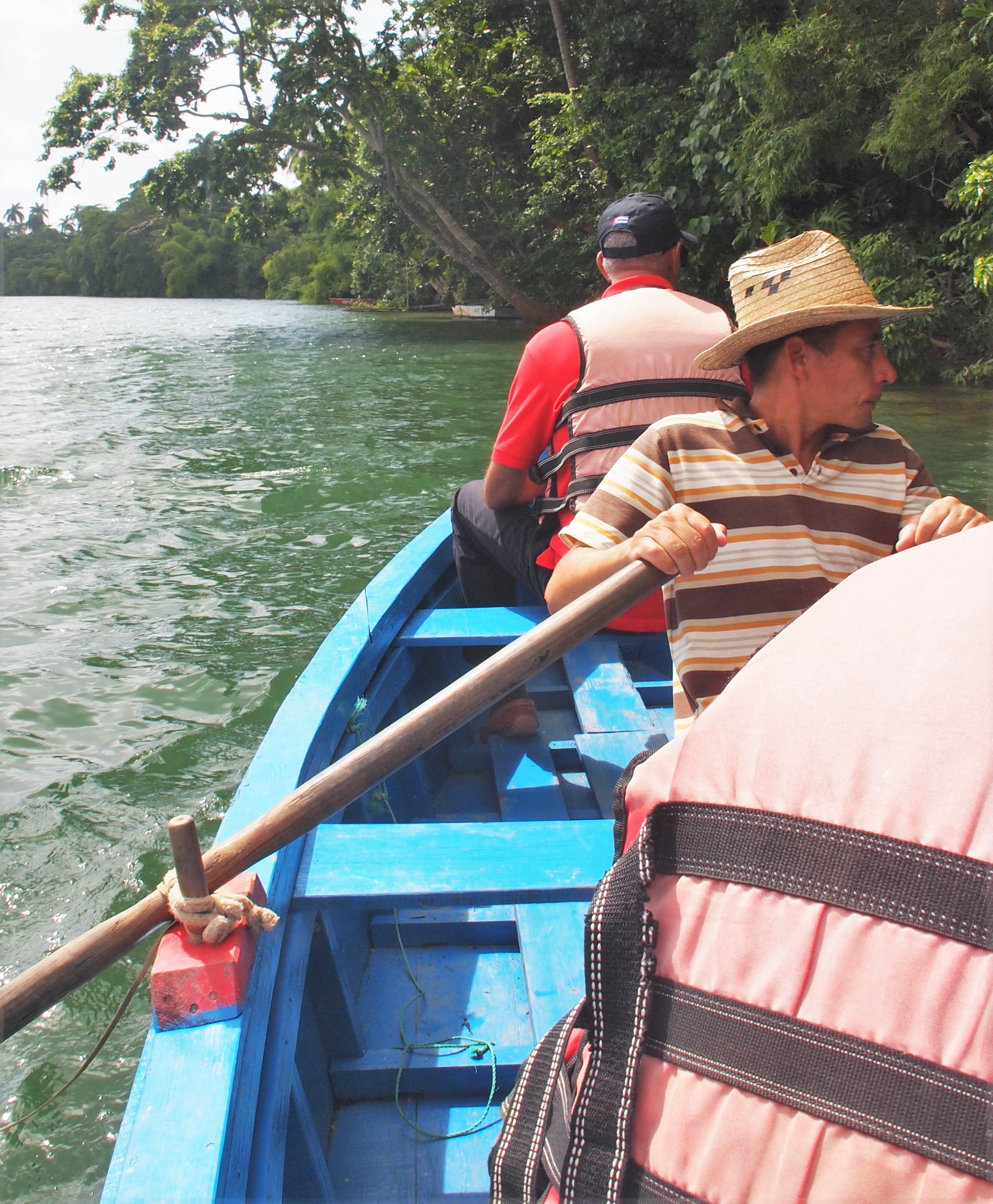 We needed to wake up a little earlier if we want fresh fruit for breakfast that the local flies have not danced on. River Tao Resort was our destination and a Cayuca (canoe) ride up river. Wildlife was limited to a couple of pigs and a crane. George, Adrian and I took turns at the oars until our guide insisted on taking over because we were slowing him down.