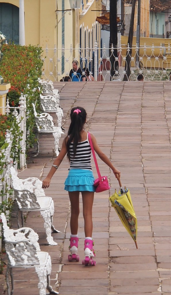 Michele and I ate dinner just off Maceo at the Hotel Camino de Hierro, a recently restored colonial building. The spacious dining room offered views past wide open doors to a veranda and the Plaza de la Solidaridad. Large groups of young people were clustering on walls at the edges of the plaza, some sharing smart phone messages and images, waiting for the festivities to beginBefore we knew it, a fight broke out between two groups. Waiters quickly rushed to slam shut the large floor to ceiling wood doors closest to the chaos as the arrival of the Police sent culprits scattering in all directions.