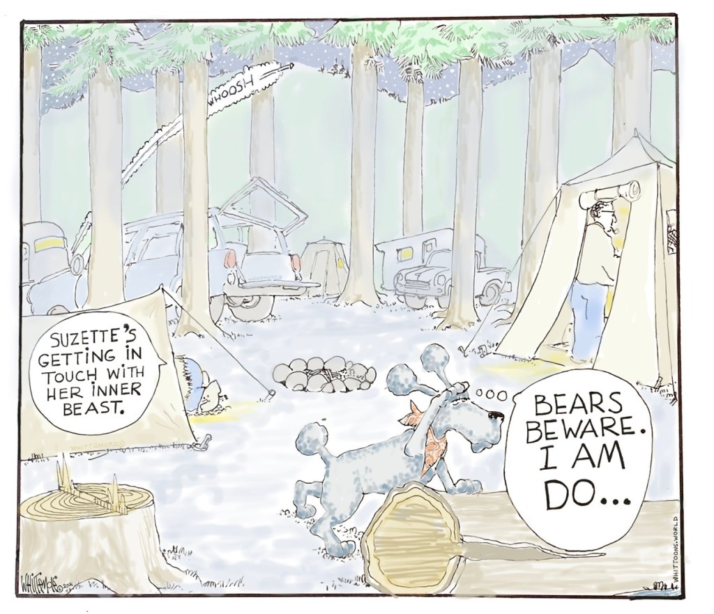 The Zombie Apocalypse was here. The inebriated undead attempted to move right into our campsite. Well OK, they might not have been quite undead, but they were in a drunken stupor as they crept towards us. With mush for brains, they were zombies as far as I could tell…and we might just be their next meal. Mom was having none of it.