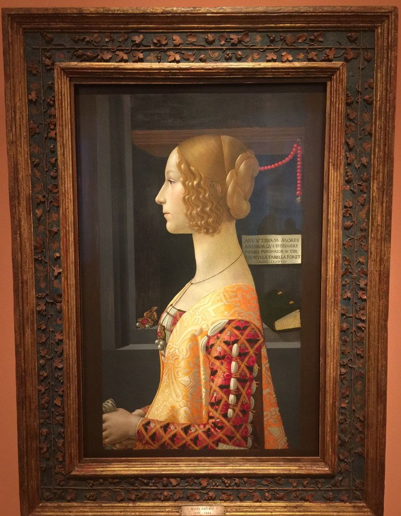 - Domensco Ghirlandaio’s Portrait of Giovanna degli Albizzi Tornabuoni (1489) was a gorgeous profile, long neck, blond hair twisted into a bun save for the waves of hair falling at the temples.