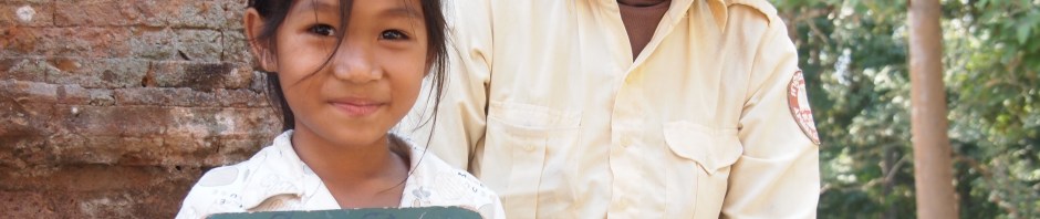 Exploring the ruins of Preah Ko, I looked over the shoulder of our guide and was entranced by a little girl doing her addition on a slate while her mom (a temple worker) looked on. Once she had finished, I asked permission to use her slate to draw a cartoon character, Thelma the fish who I drew to life years ago during a Ravenna Creek Daylighting campaign in Seattle. During an academic design charette, I, as resident cartoonist, drew Thelma to life wandering through sloughs, across mall parking lots, down grocery store aisles to reach the Ravenna headwaters. Now here she was bringing a smile to a Cambodian girl, if only for brief moments until the slate was needed for multiplication again.